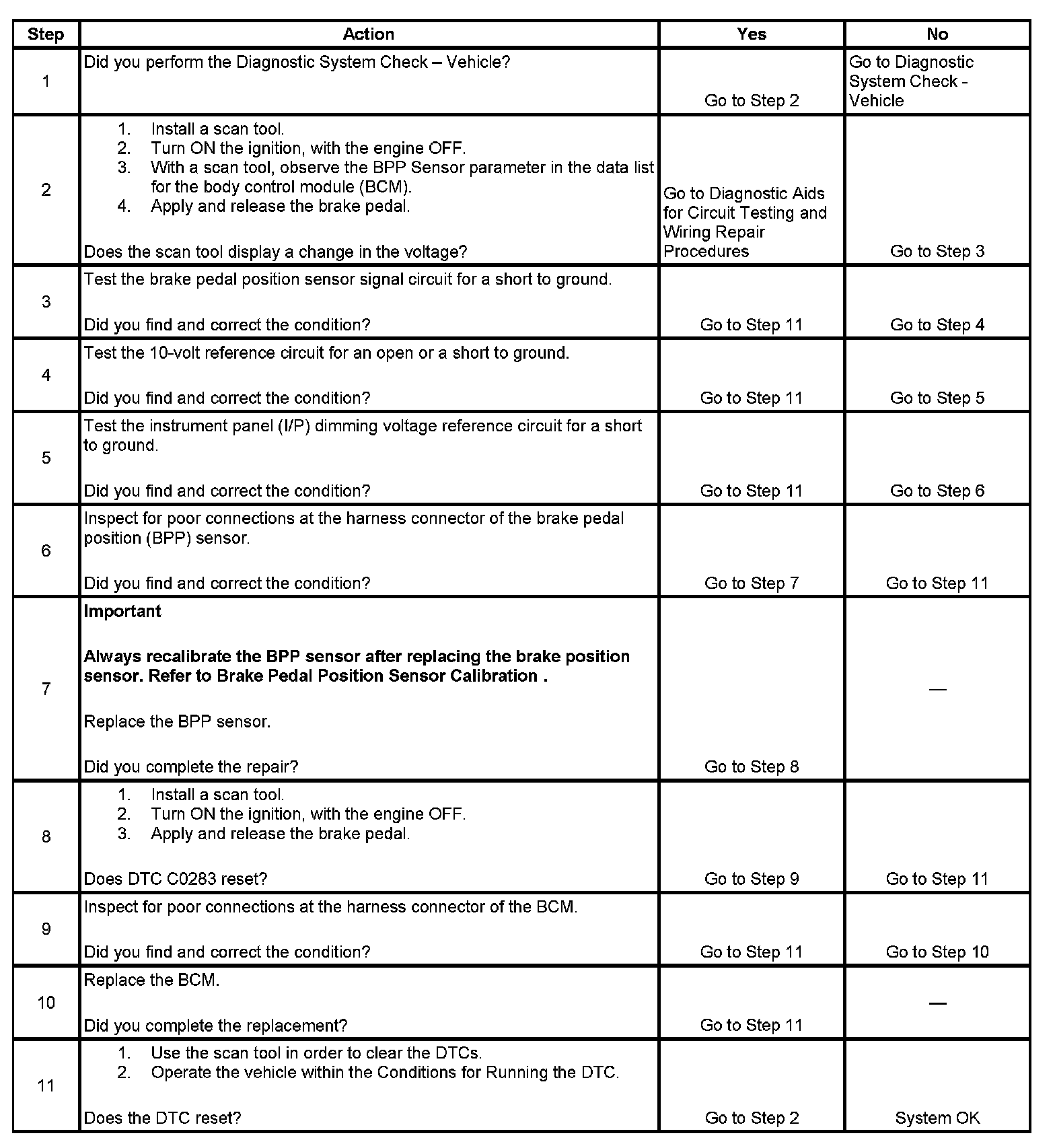 DTC C0283 Brake Pedal Position Sensor Circuit Low