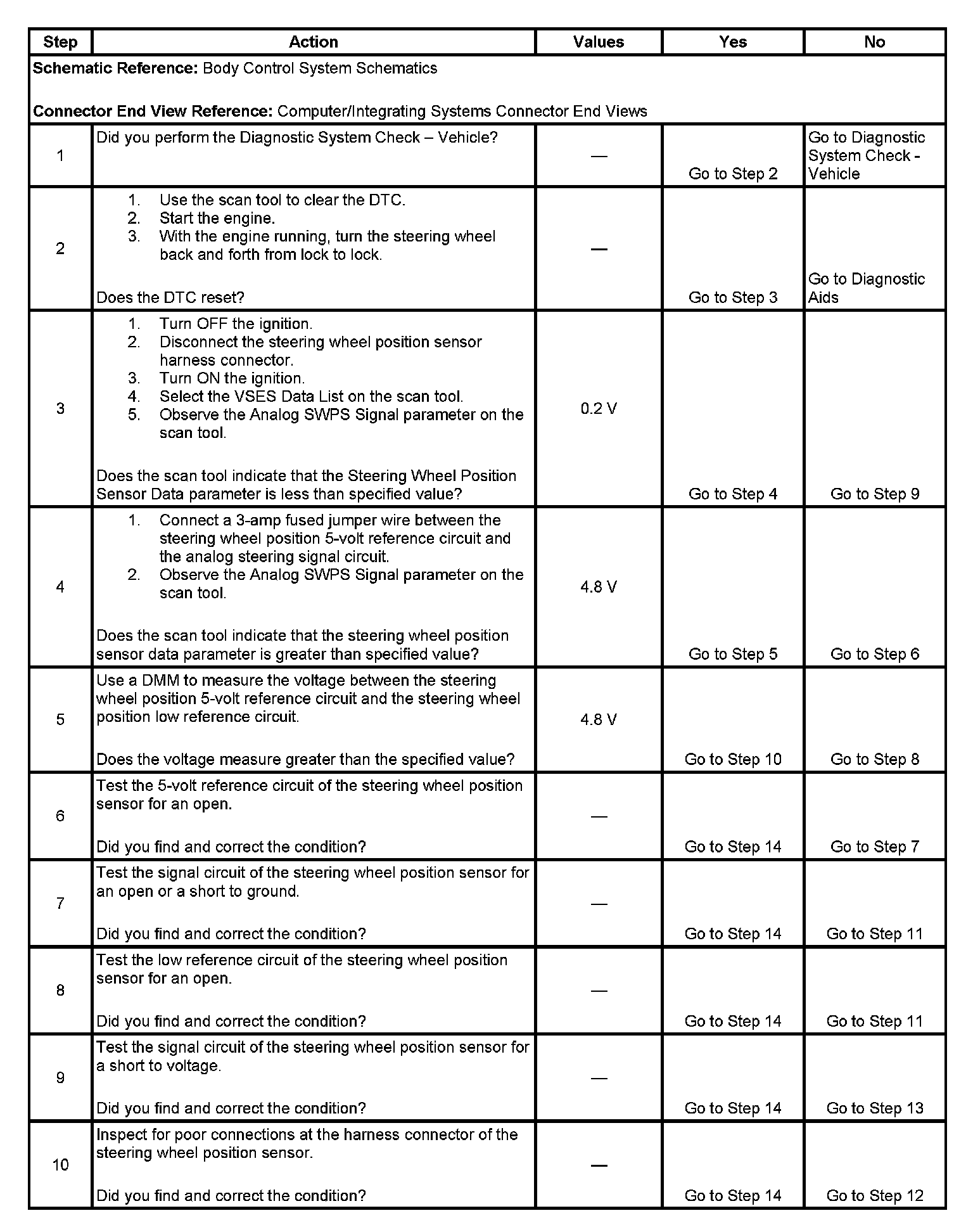 5. This step tests the low reference circuit of the steering wheel position sensor.