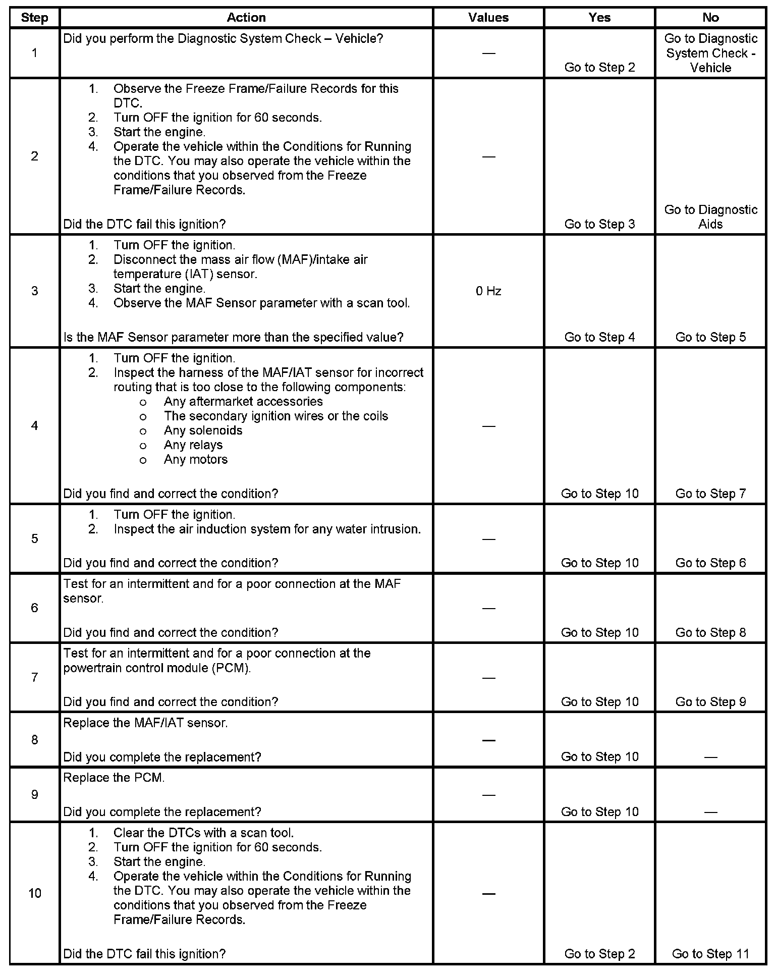 - If the condition is intermittent, refer to Intermittent Conditions. Intermittent Conditions