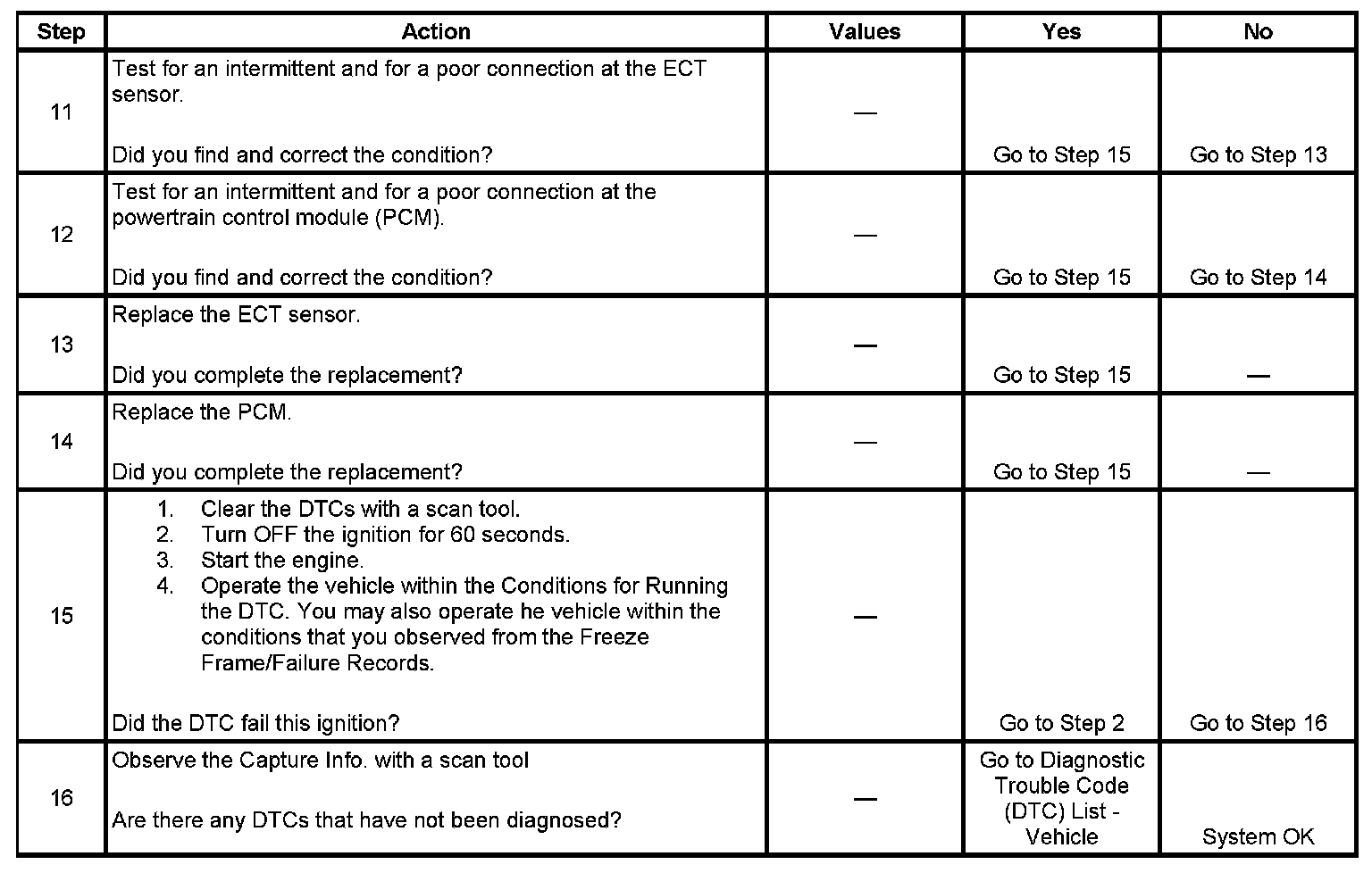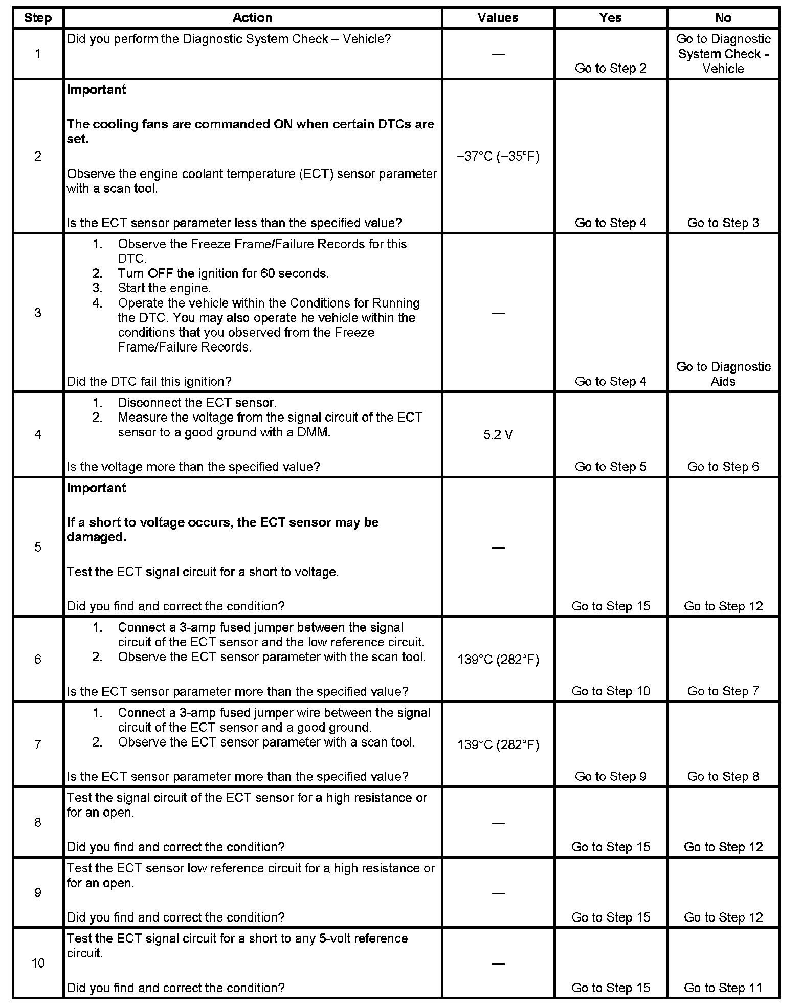 - If a short to a separate voltage source occurs this DTC may set and damage the ECT sensor.