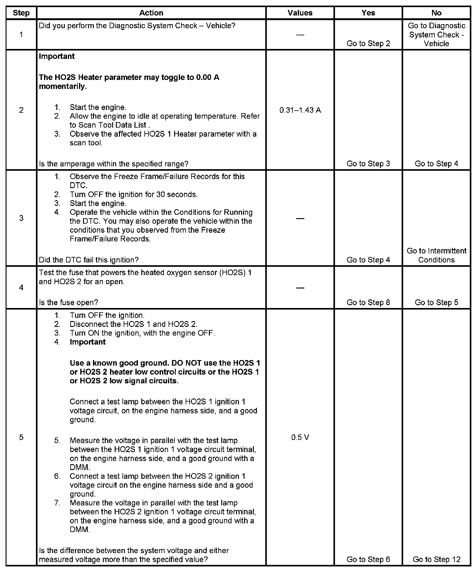- The HO2S heater current is less than 0.31 amps or more than 1.43 amps for at least 17 out of 20 test samples. Five tests during each trip with a 30-second delay between each test.