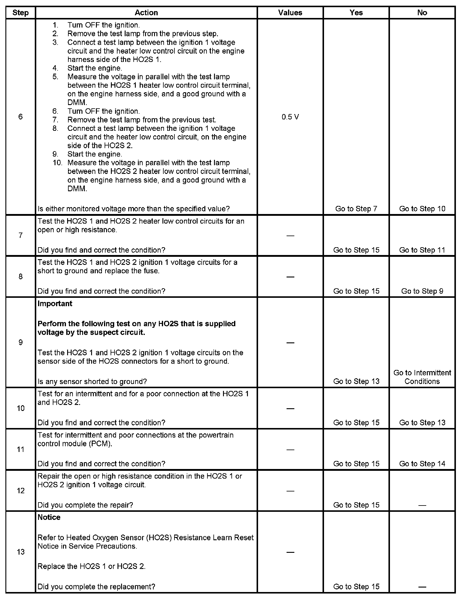 If the PCM detects that the HO2S 1 heater low control circuit current level is not within the calibrated range, DTC P0135 will set.
