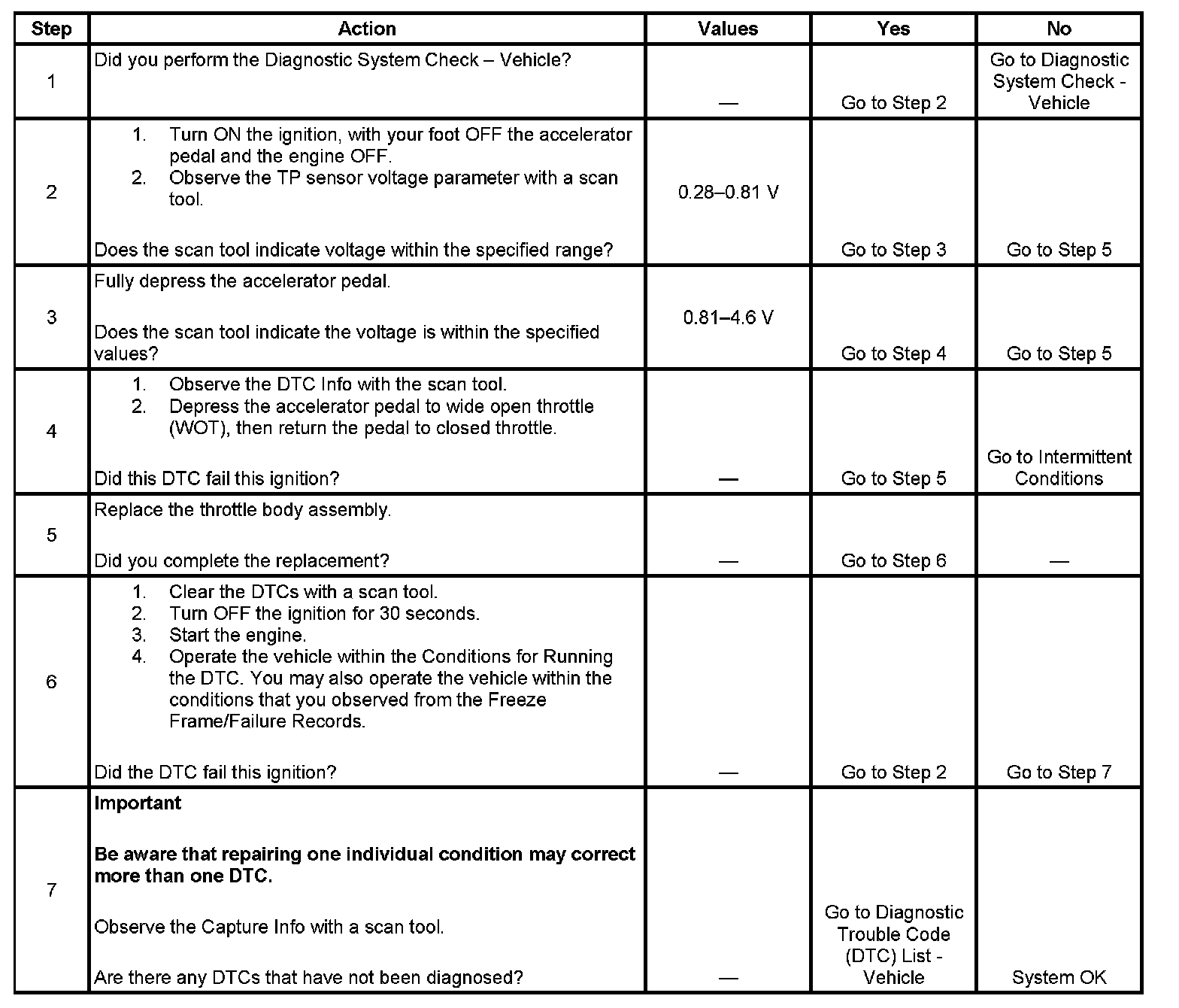 - The PCM learns a minimum throttle position of more than 0.813 volt.OR