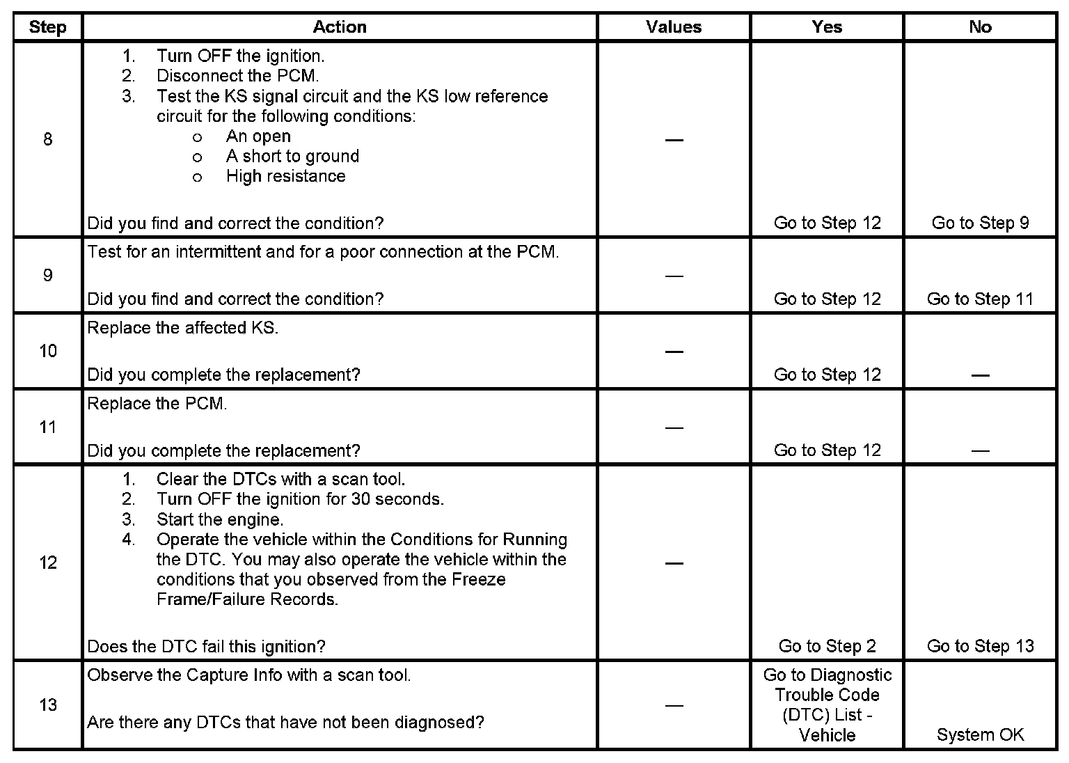 - Inspect the KS for physical damage. A KS that is dropped or damaged may cause a DTC to set.