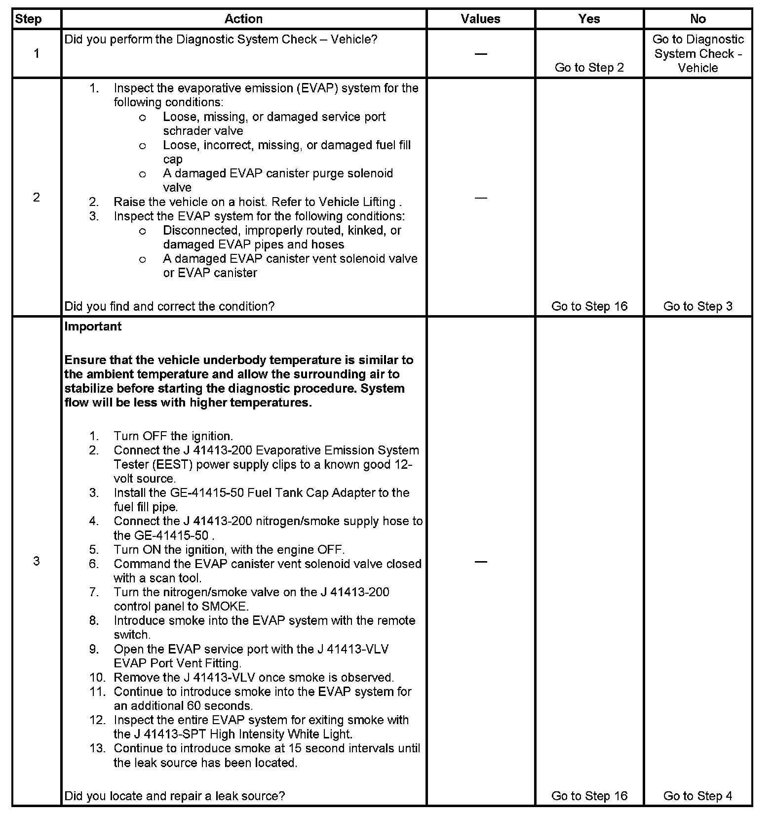 - To help locate intermittent leaks, use the J 41413-200 Evaporative Emission System Tester (EEST) to introduce smoke into the EVAP system. Move all EVAP components while observing smoke with the J 41413-SPT High Intensity White Light. Introducing smoke in 15 second intervals will allow less pressure into the EVAP system. When the system is less pressurized, the smoke will sometimes escape in a more condensed manner.