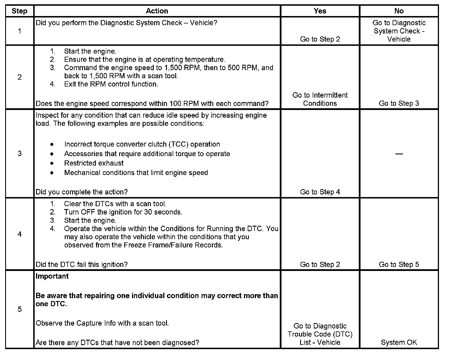 2. This test determines whether the engine can achieve the commanded RPM. If the engine does not reach the commanded RPM, the test determines whether the RPM is too high or too low.