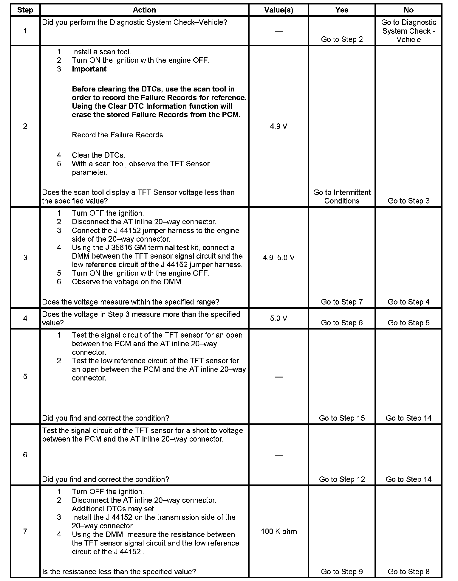 9. A short to the TFT sensor signal circuit and any other circuits in the transmission harness could cause the TFT sensor to open.