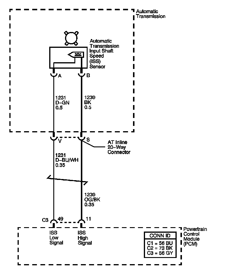 There is a fixed air gap between the sensor and the teeth on the sensor reluctor wheel. The ISS sensor input is used by the PCM in order to control line pressure, TCC apply and release and transmission shift patterns. This sensor is also used to calculate the appropriate gear ratios and TCC slippage.