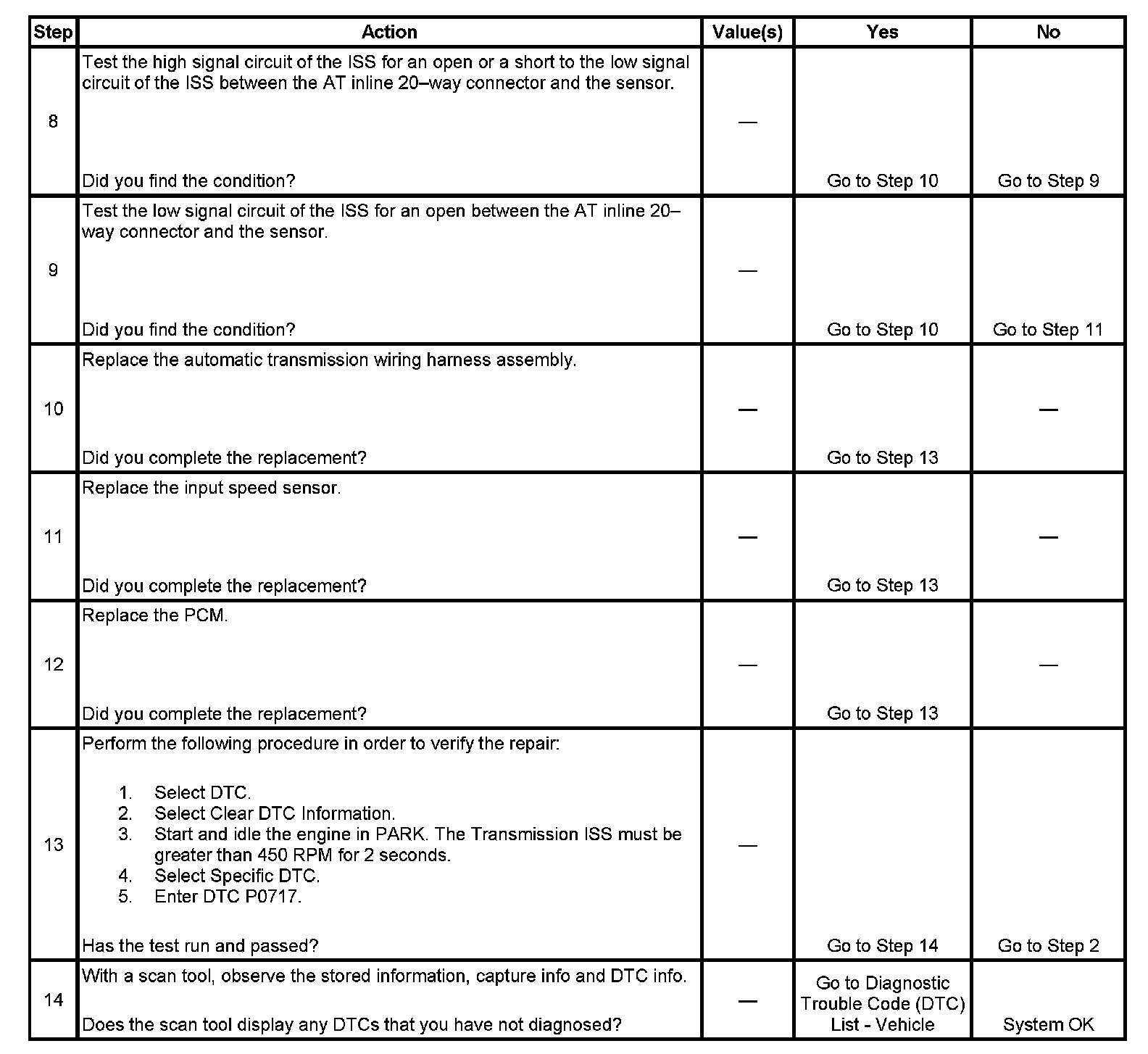 If the PCM detects a low input speed while the vehicle and engine speeds are high, then DTC P0717 sets. DTC P0717 is a type B DTC.