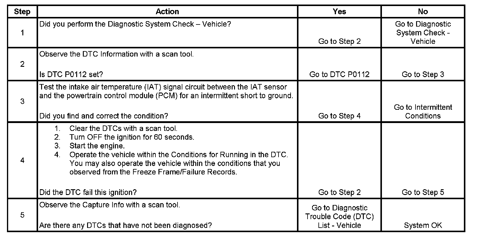 DTC P1112 Intake Air Temperature (IAT) Sensor Circuit Intermittent High Voltage
