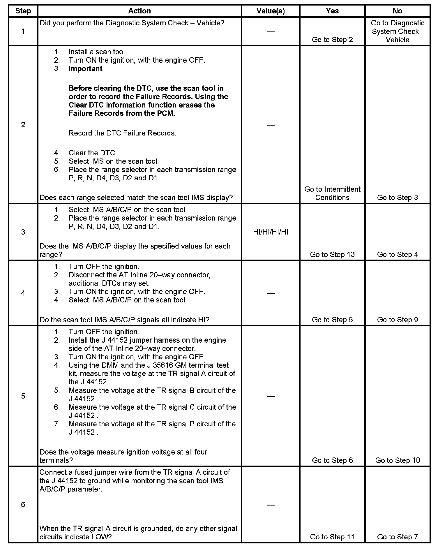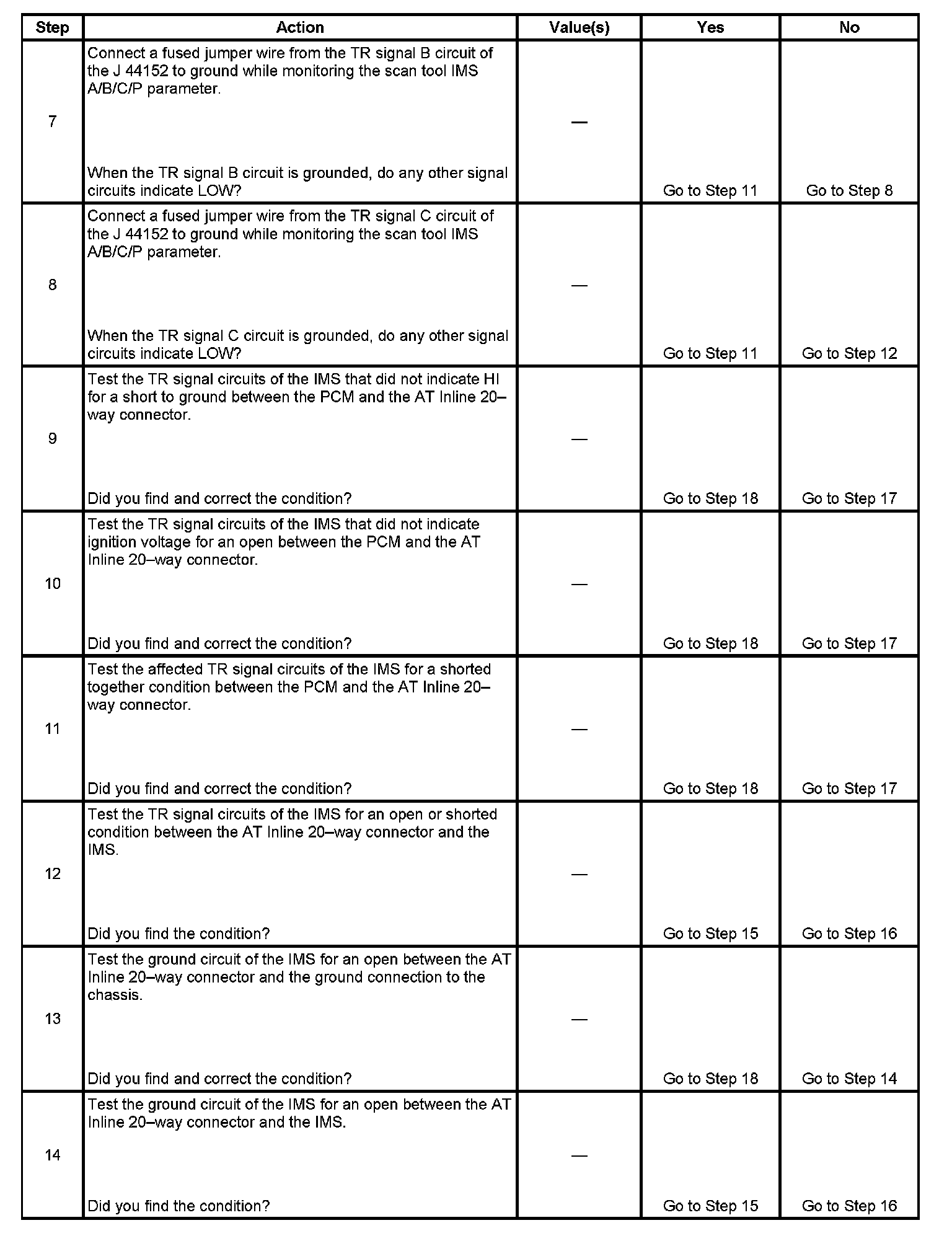 13. This step tests the internal transmission harness. If no fault is found in the harness, the fault will be in the switch.