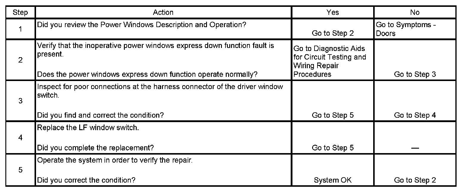 Power Windows - Inoperative - Express Down Function