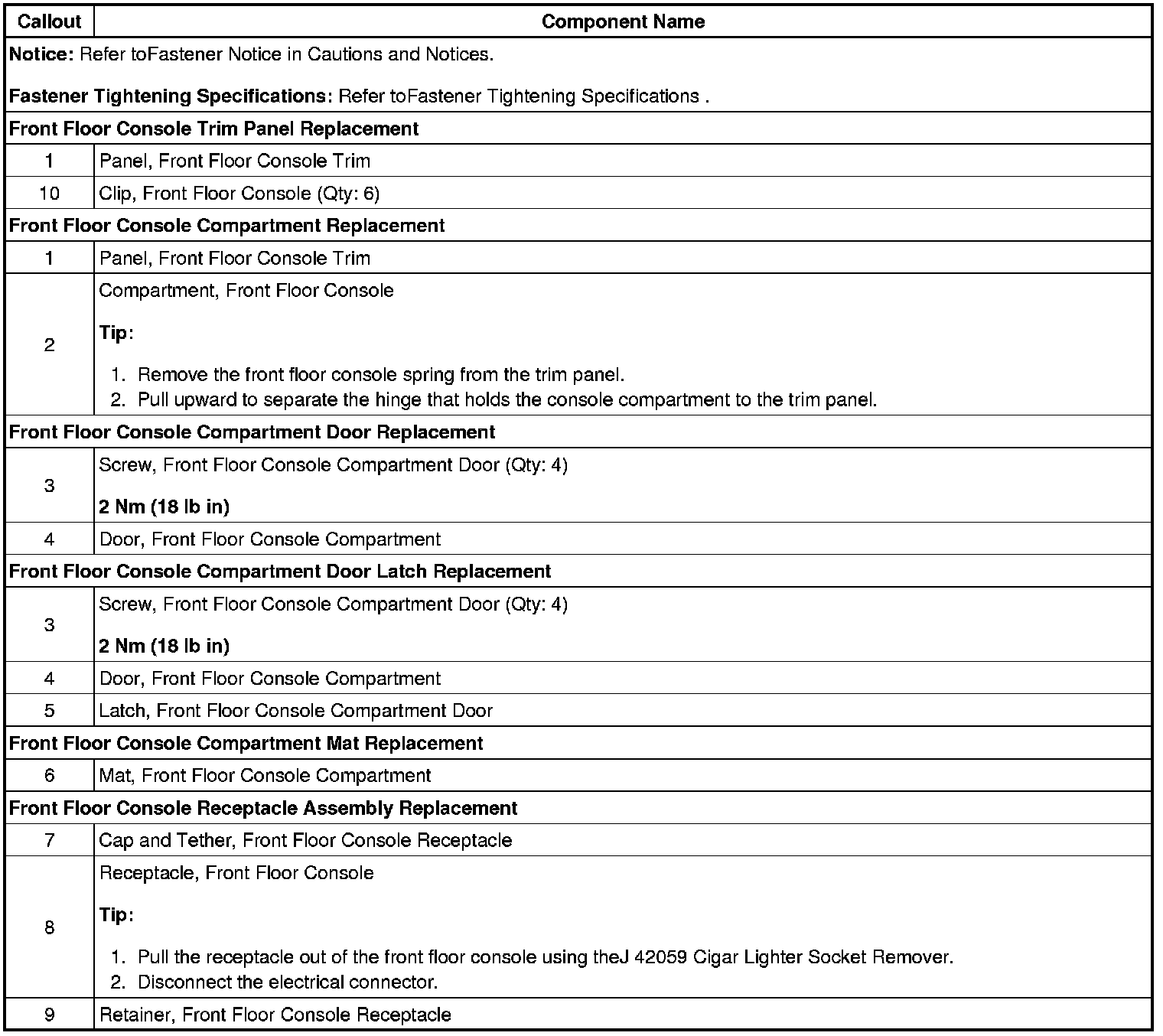 Compartment, Door, Latch, Panel, Mat Replacement - Front Floor Console (Uplevel)