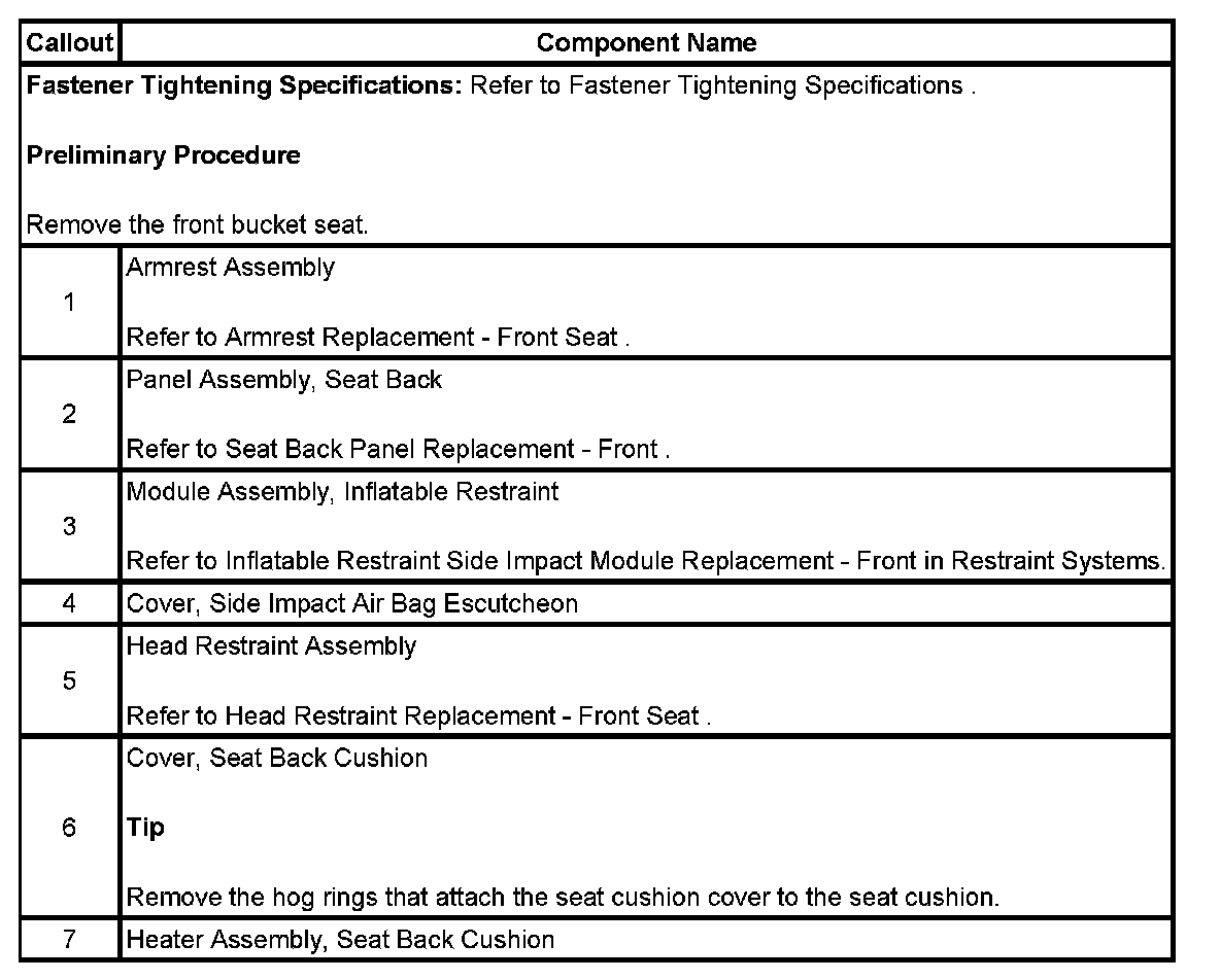 Seat Back Heater Element Replacement - Front