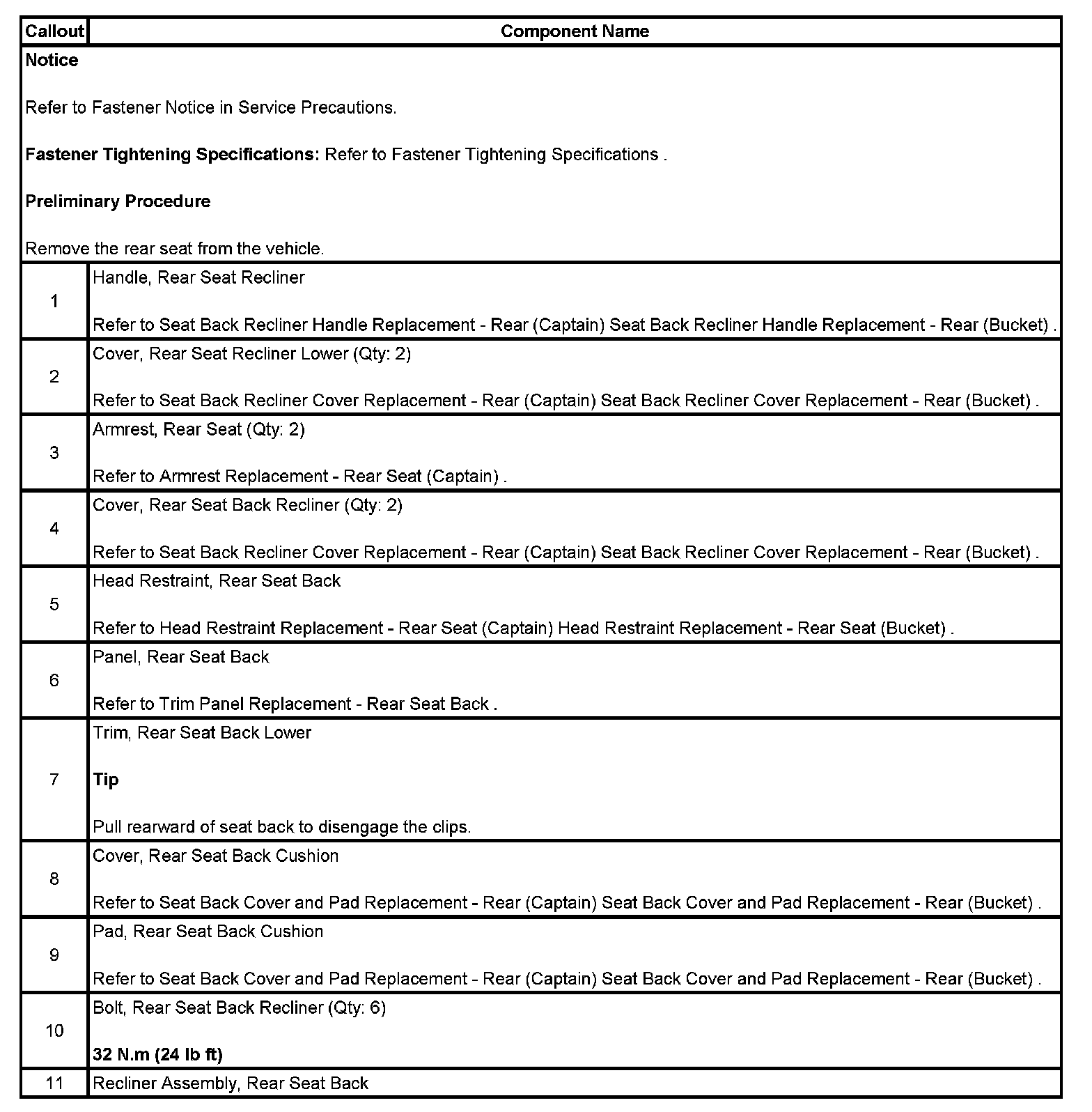 RECLINER REPLACEMENT - REAR (CAPTAIN)