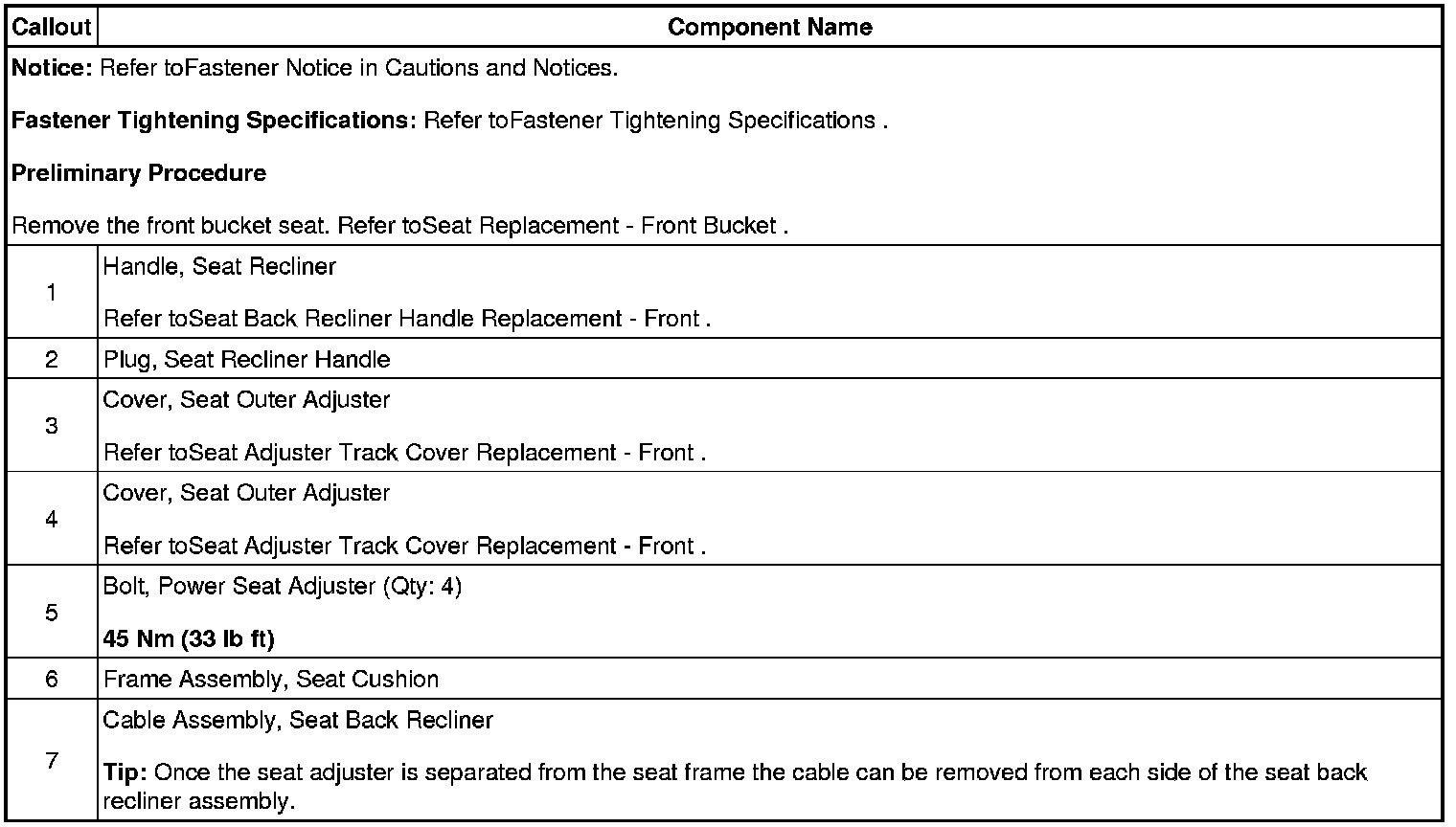 Seat Back Recliner Cable Replacement - Front