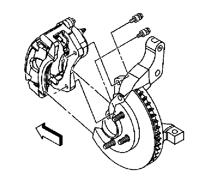 7. Install the brake caliper and the brake caliper bracket as an assembly to the suspension knuckle.