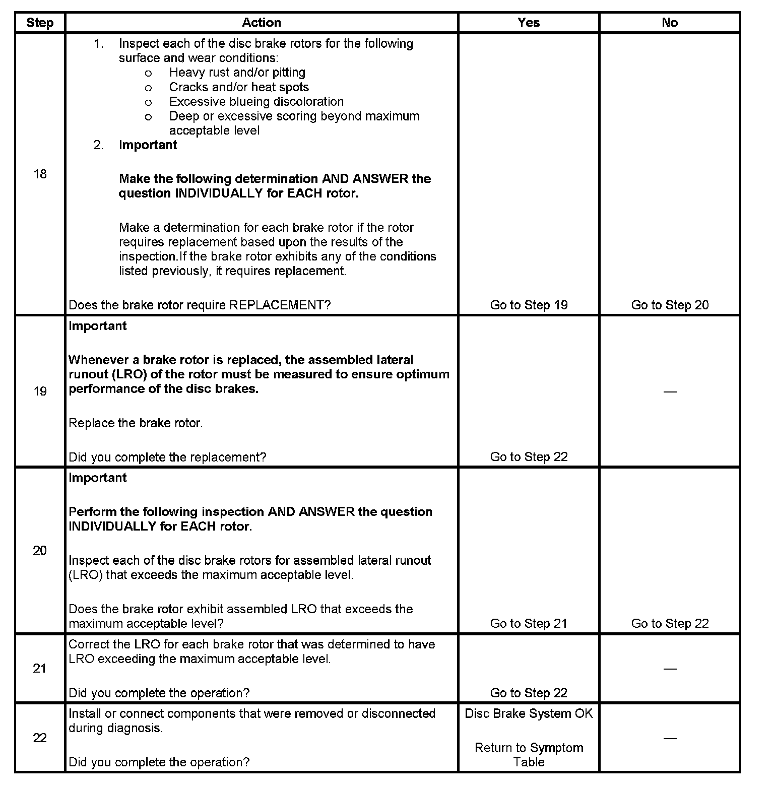 20. Disc brake rotor assembled lateral runout (LRO) that exceeds the maximum acceptable level can lead to thickness variation.