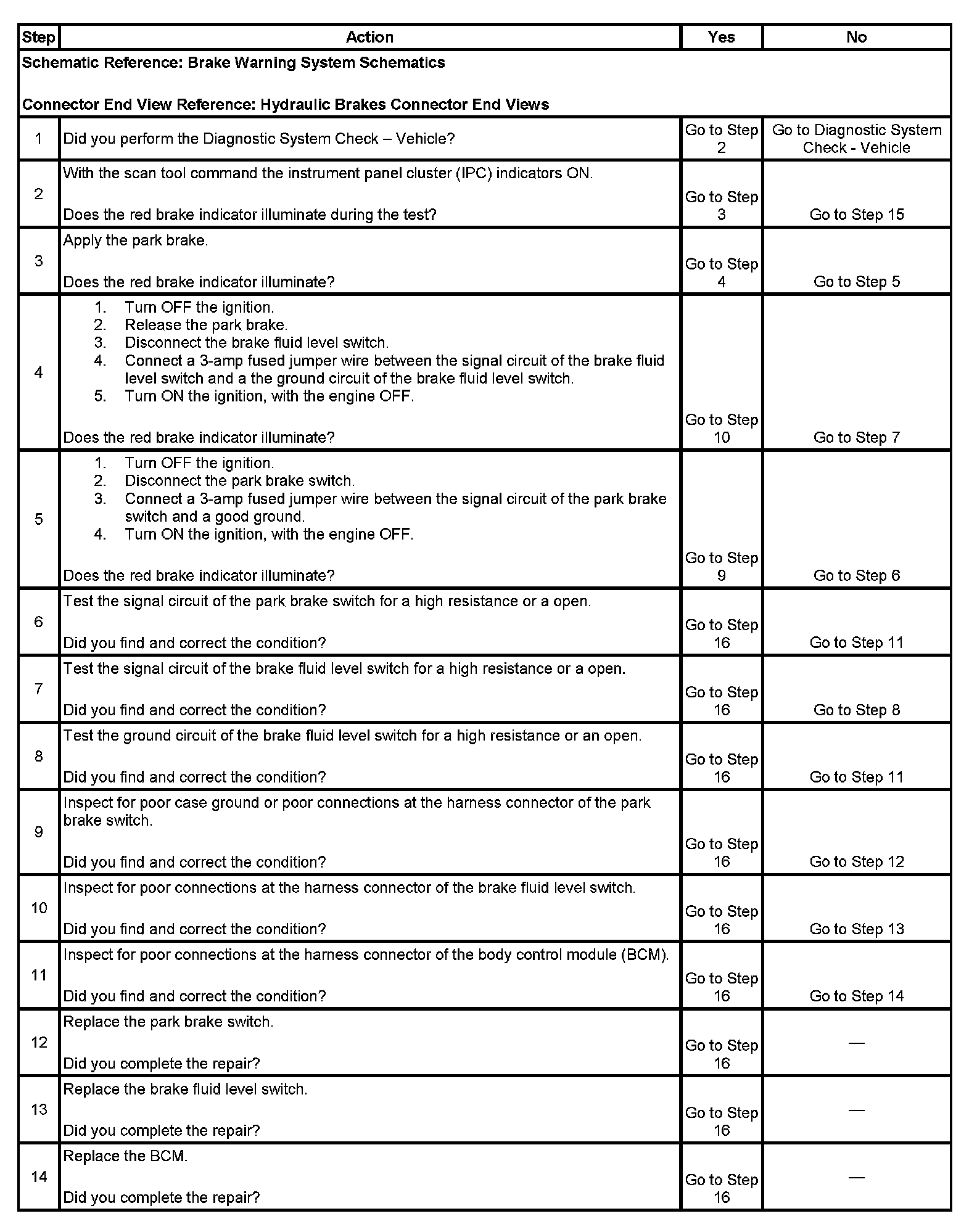 Brake Warning Indicator Inoperative