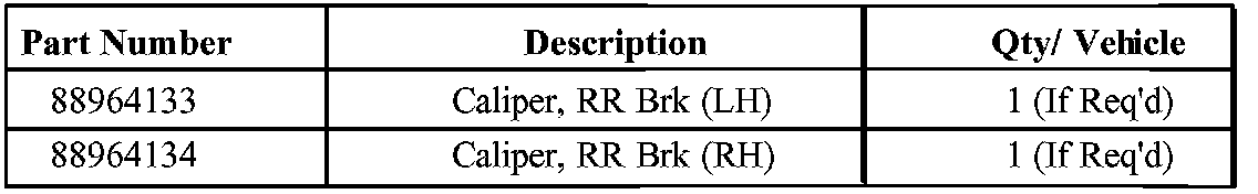 It is estimated that less than 2% of involved vehicles will require brake caliper replacement. Parts must be ordered from GMSPO as a SPAC case after inspection determines the replacement is necessary. The VIN will be required. The caliper removed from the vehicle will be on warranty parts return. All CSO or DRO orders will be canceled.