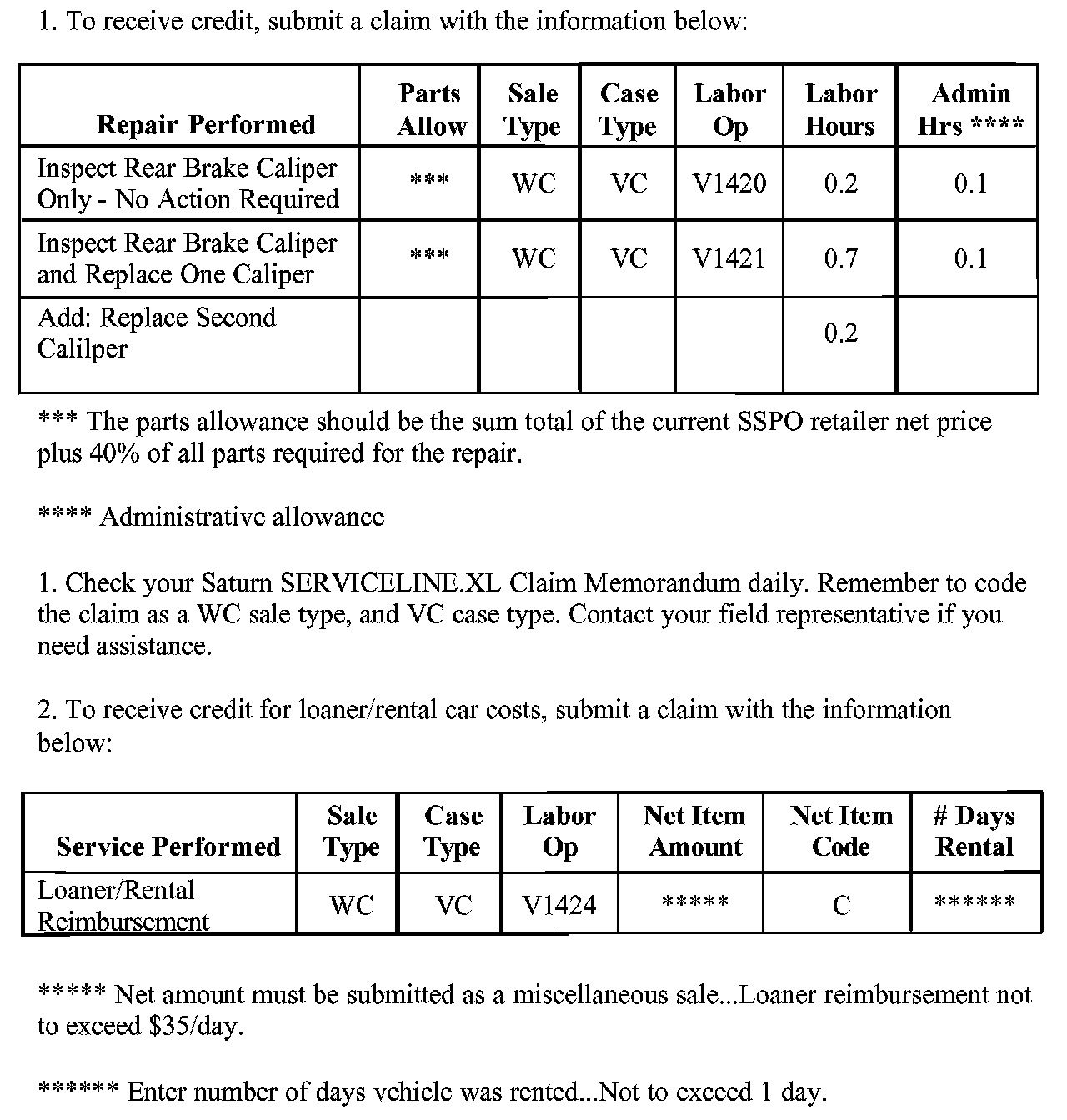 Claim Information - Saturn US Only