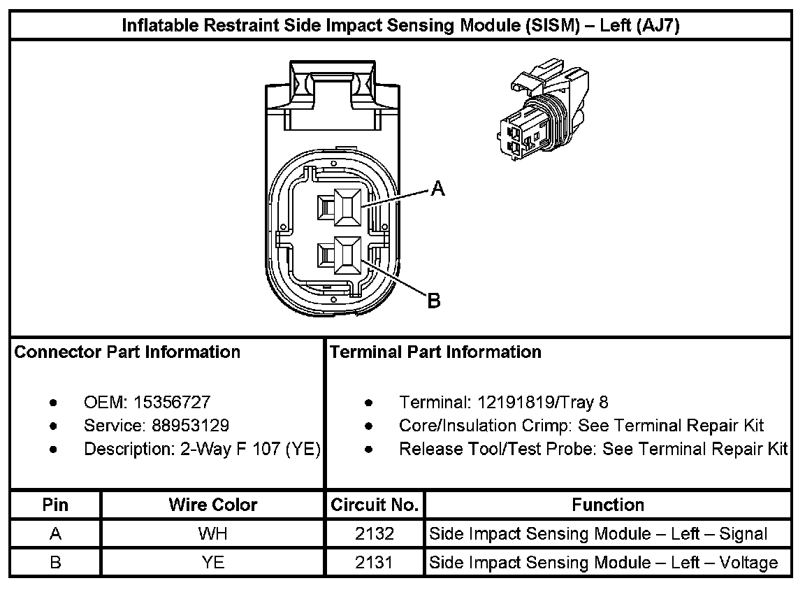 Inflatable Restraint Side Impact Module (SISM) - Left (With RPO Code AJ7):