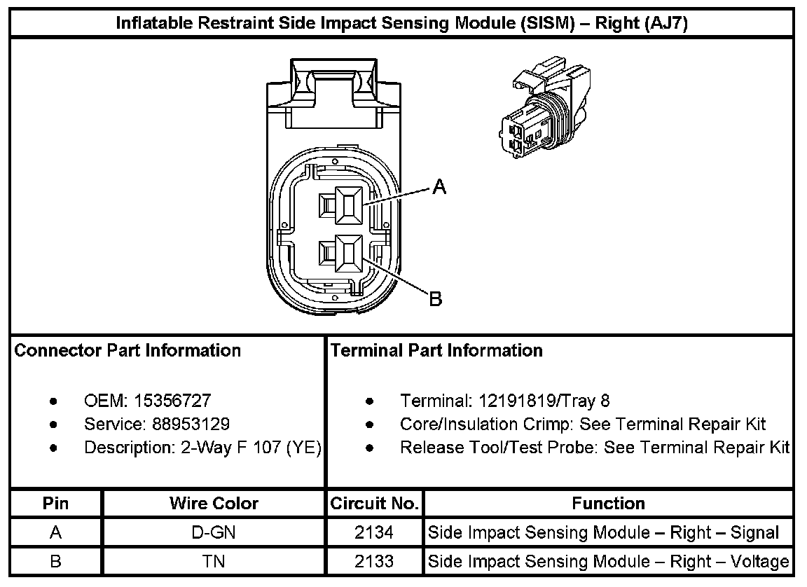 Inflatable Restraint Side Impact Module (SISM) - Right (With RPO Code AJ7):