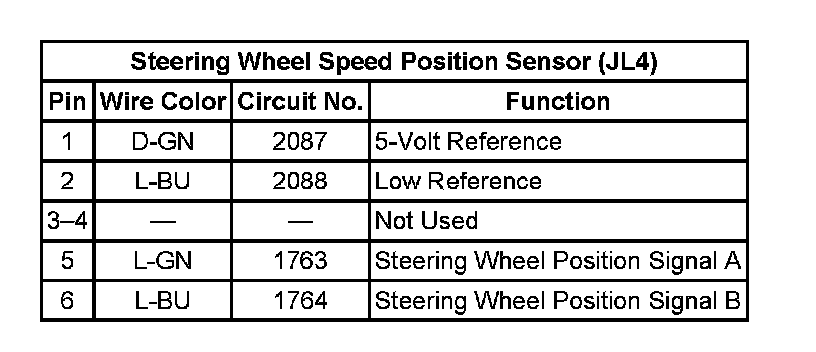 Steering Wheel Speed Position Sensor (JL4) 6-Way Connector End View:
