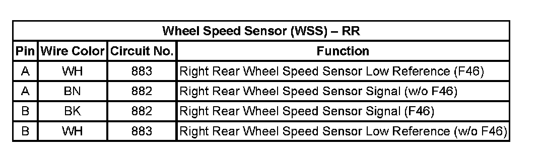 Wheel Speed Sensor (WSS) - RR 4-Way Connector End View: