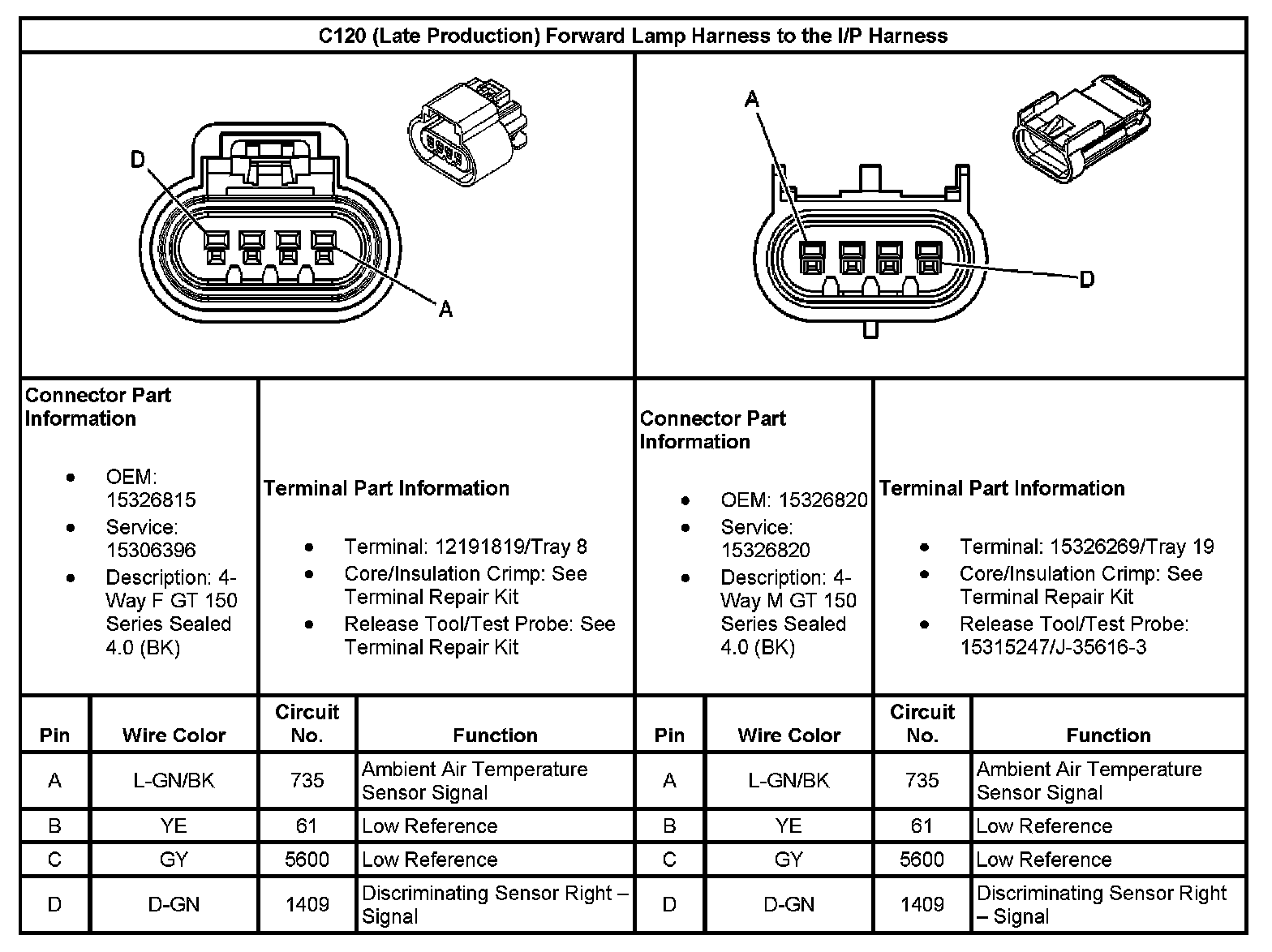 C120 (Late Production) Forward Lamp Harness To The I/P Harness: