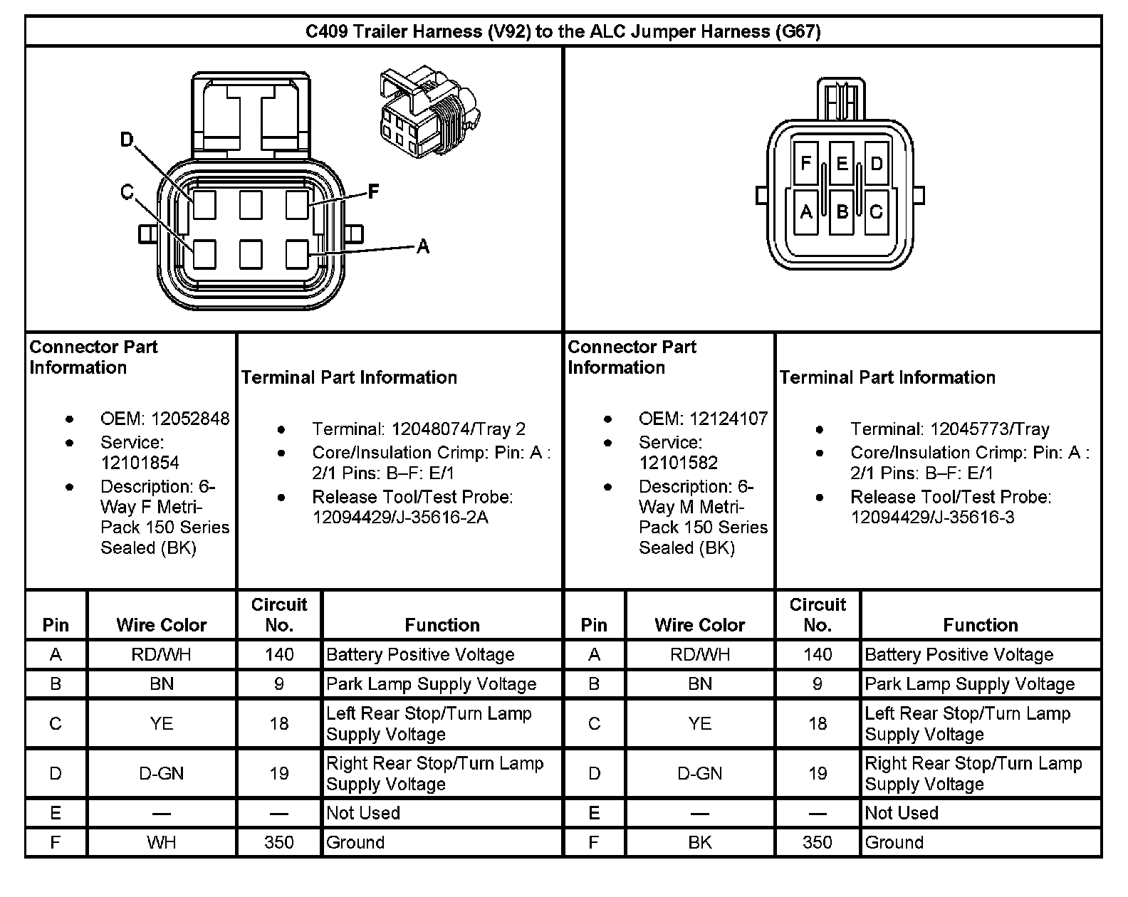C409 Trailer Harness (With RPO Code V92) To The ALC Jumper Harness (With RPO Code G67):