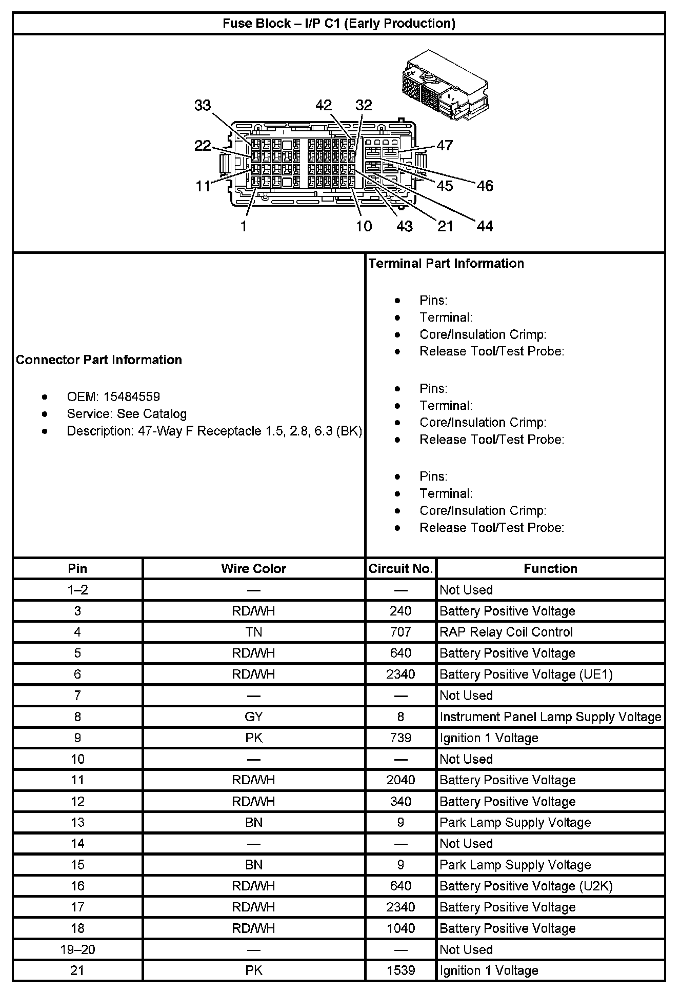 Fuse Block - I/P C1 (Early Production) (Part 2):
