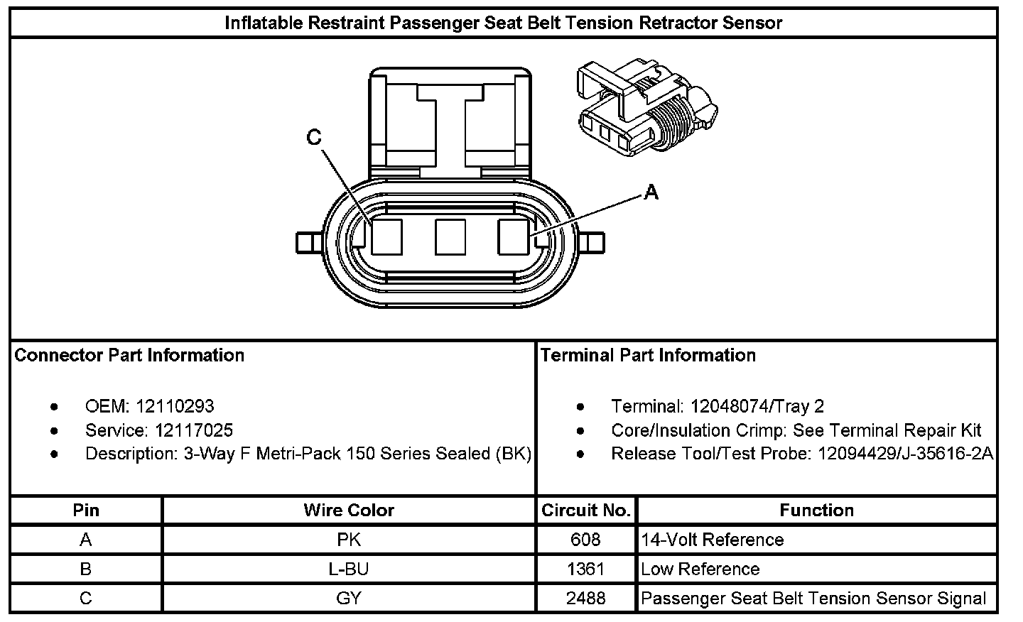 Inflatable Restraint Passenger Seat Belt Tension Retractor Sensor: