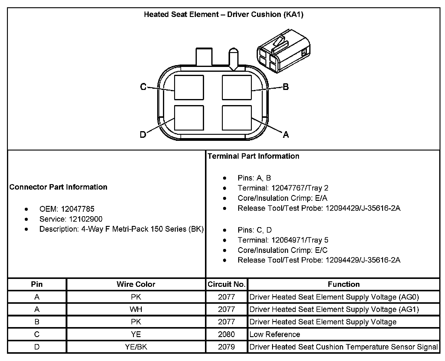 Heated Seat Element - Driver Cushion (With RPO Code KA1):