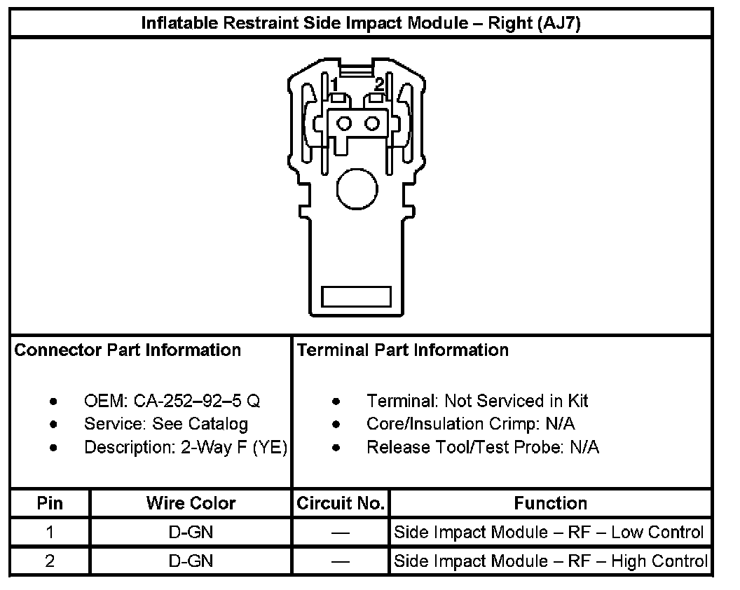 Inflatable Restraint Side Impact Module - Right (With RPO Code AJ7):