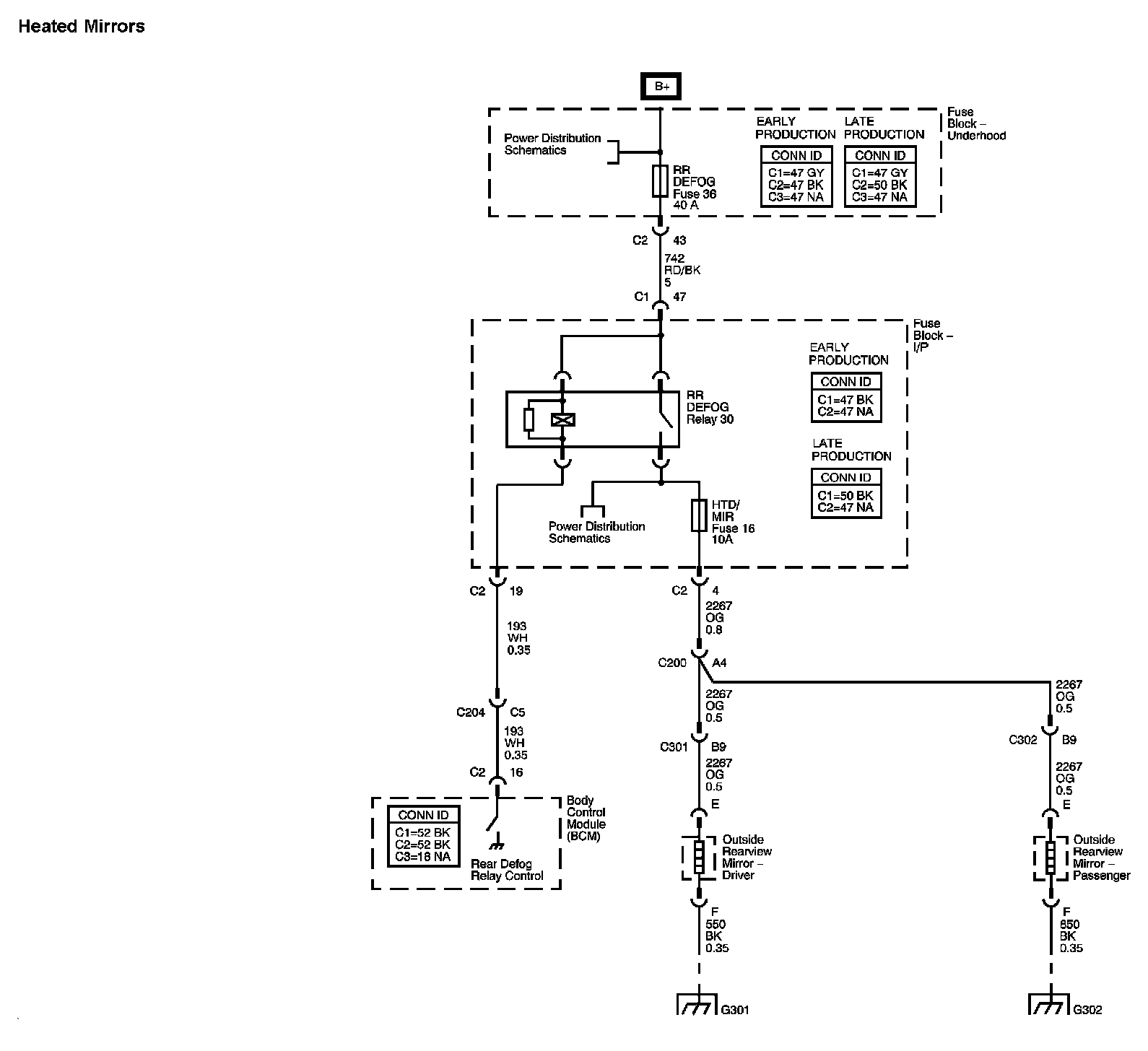 The locations for the Connectors, Grounds, Splices, and Grommets shown within these diagrams can be found via their numbers at Vehicle Locations.