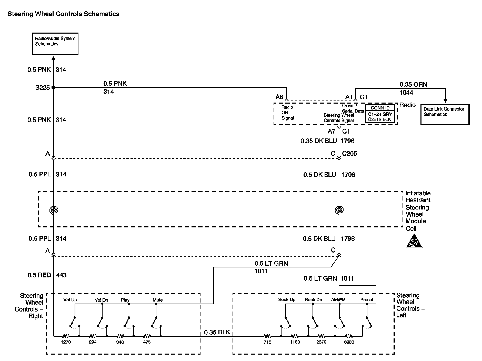 Location: The locations for the Connectors, Grounds, Splices, and Grommets shown within these diagrams can be found via their at Vehicle Locations. Locations