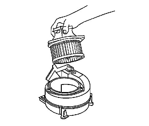 3. Install the blower motor housing to the auxiliary HVAC module assembly.Align the rear tabs of the blower motor housing to the HVAC module.
