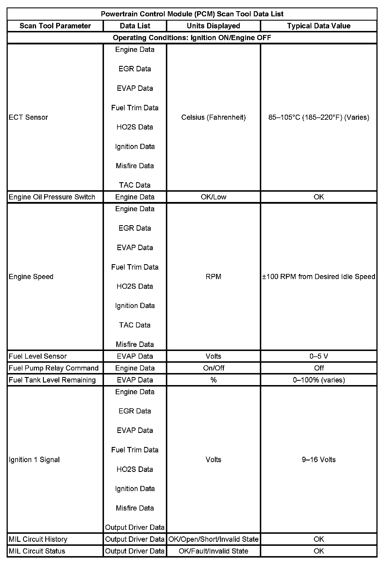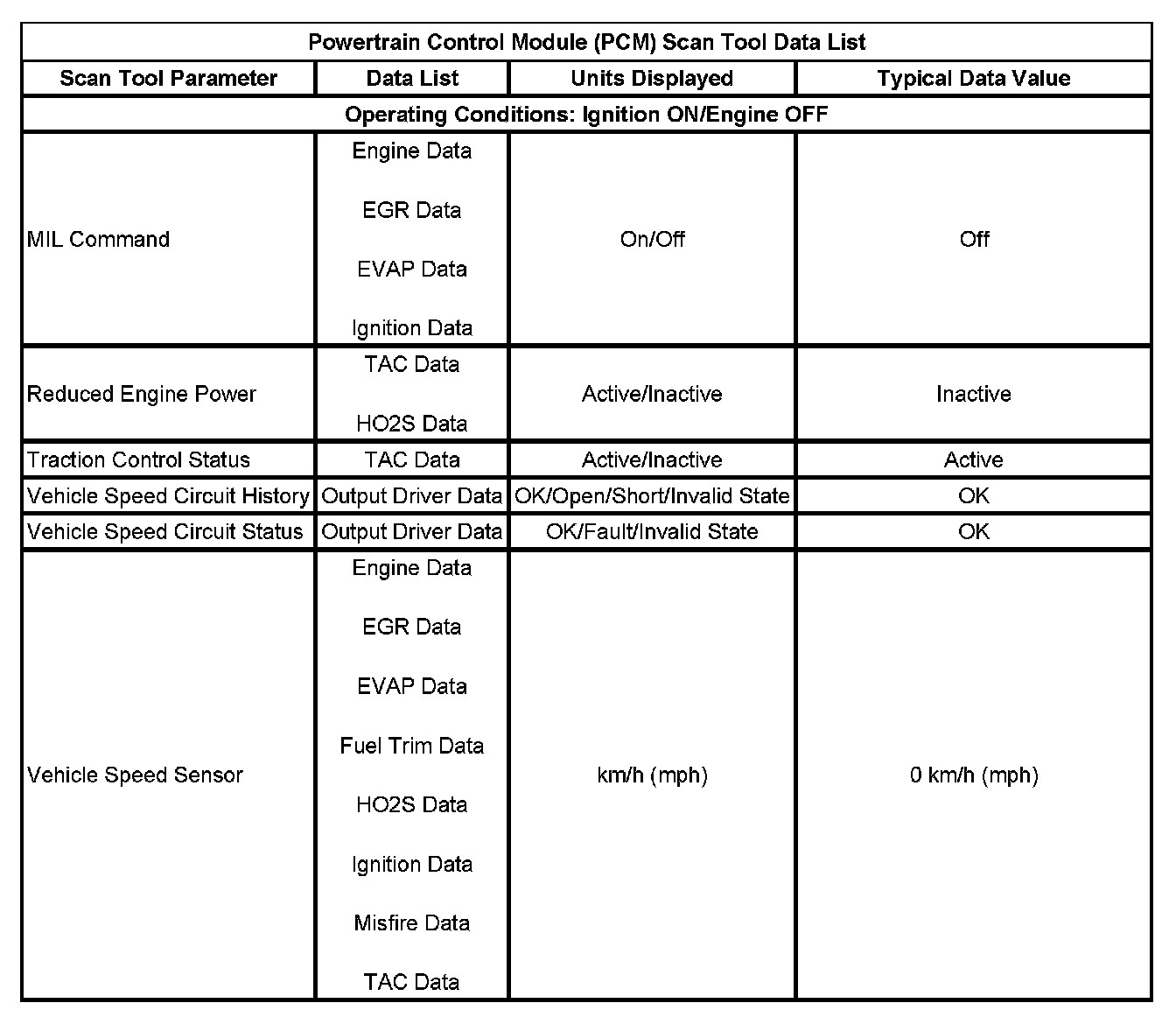 Scan Tool Data List - Powertrain Control Module (PCM)