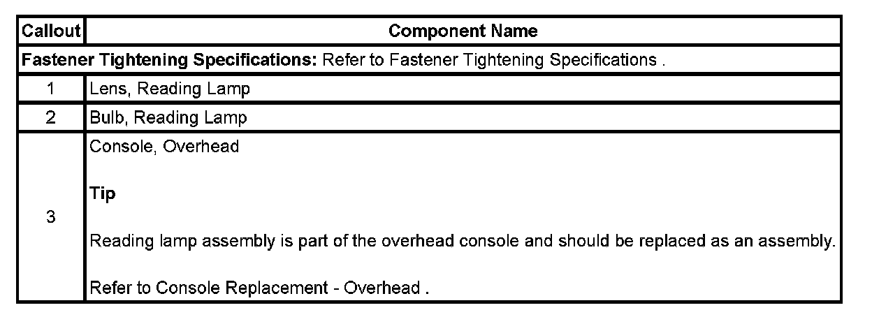 READING LAMP AND BULB REPLACE - OVERHEAD CONSOLE