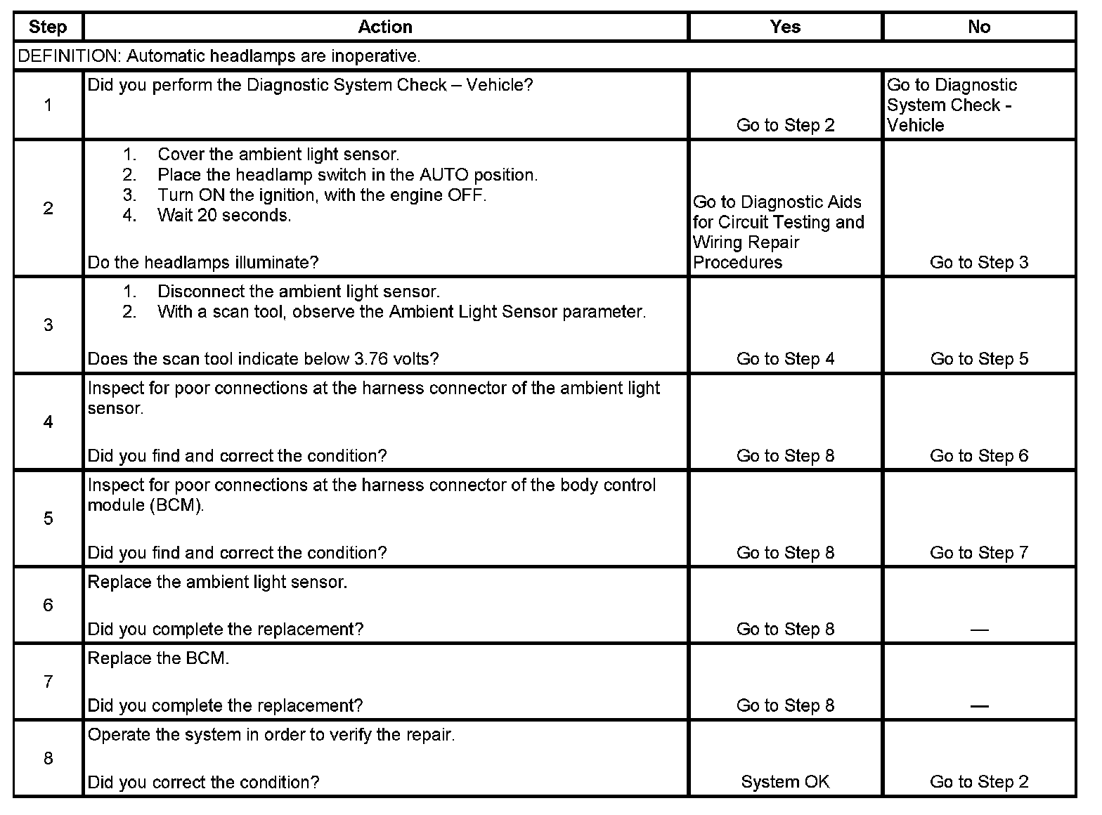 Automatic Lamp Control Inoperative