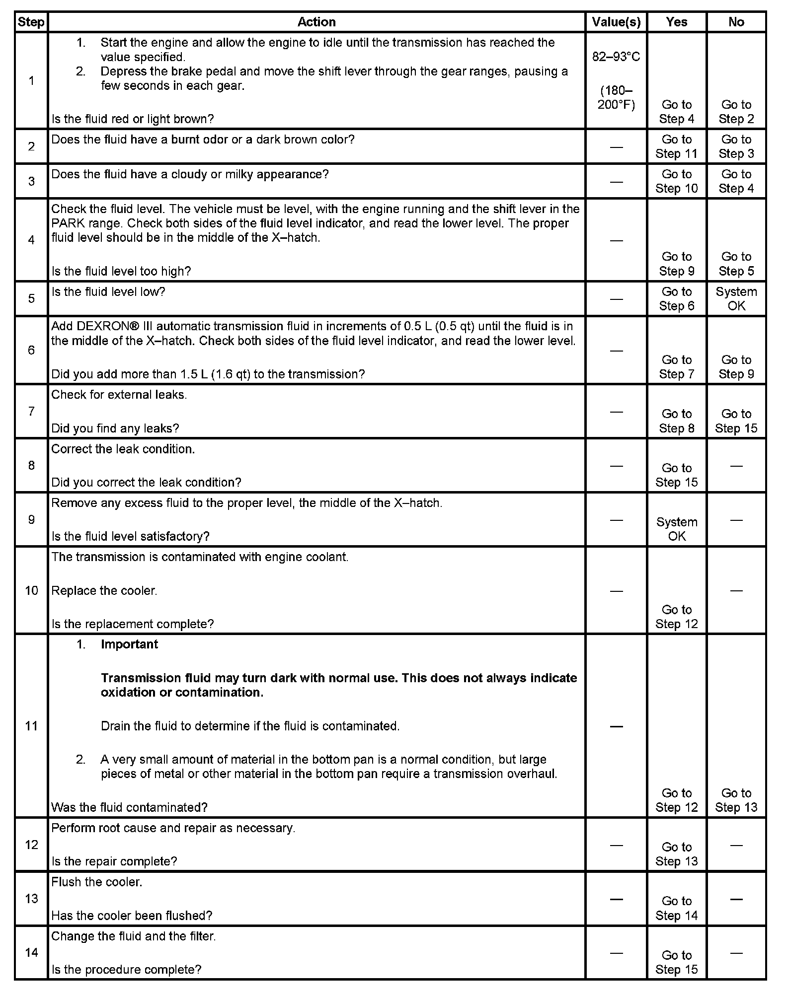 Transmission Fluid Level and Condition Check