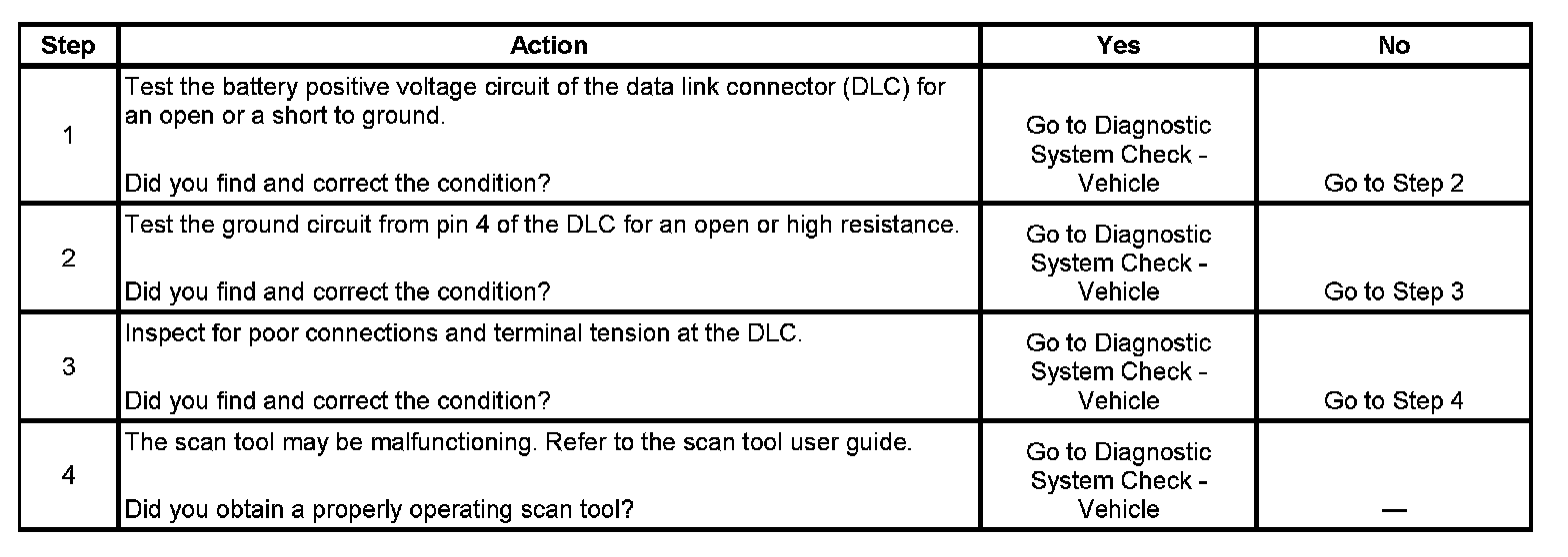 4. If the battery positive voltage and ground circuits of the DLC are functioning properly. The malfunction must be due to the scan tool.
