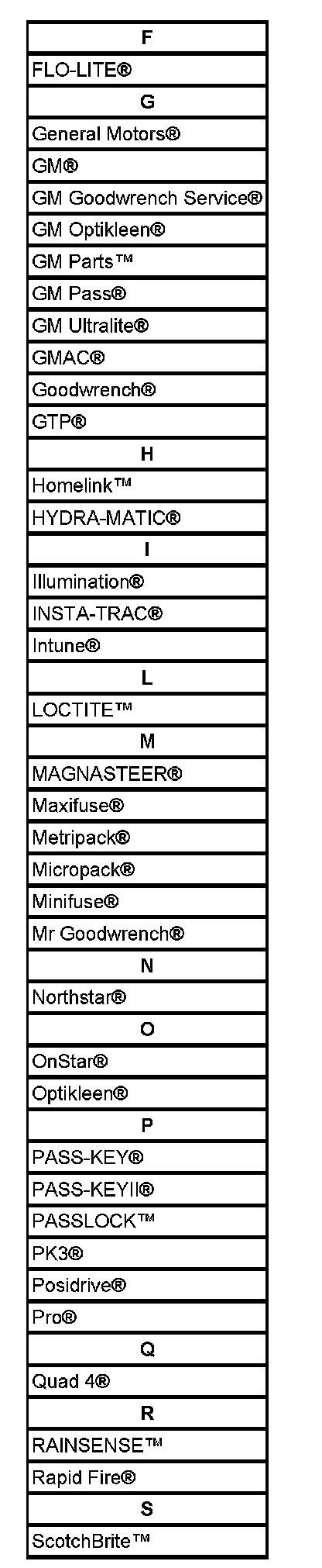 Listed are Registered Trademarks ((R)) or Non-Registered Trademarks ((TM)) which may appear in this service data.