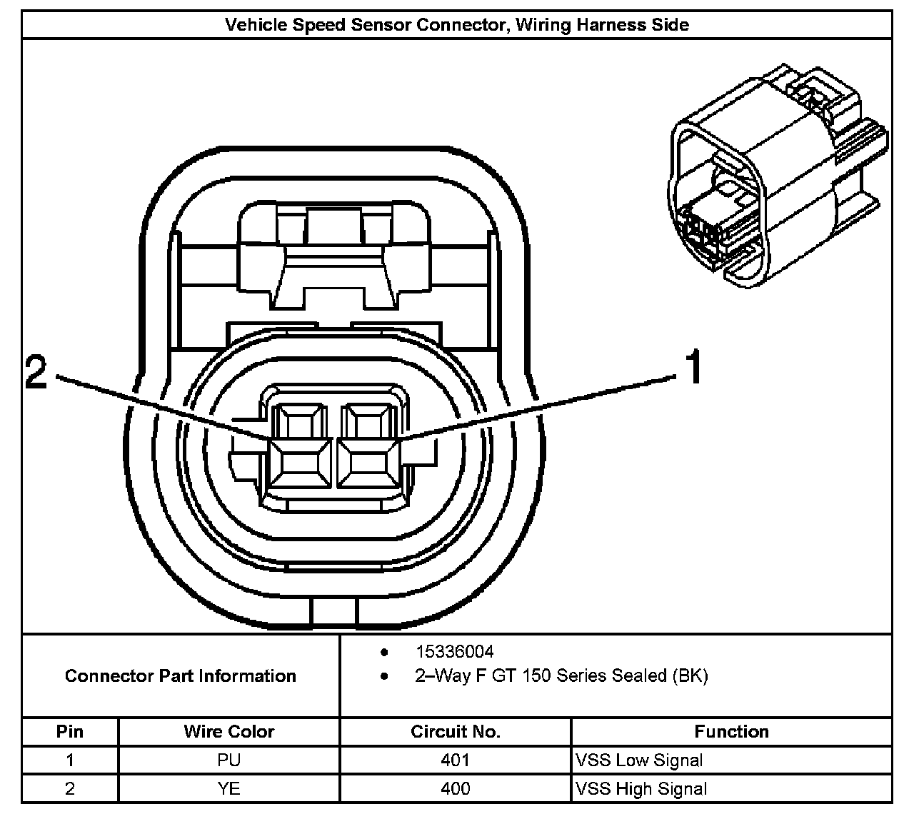 Vehicle Speed Sensor Connector, Wiring Harness Side: