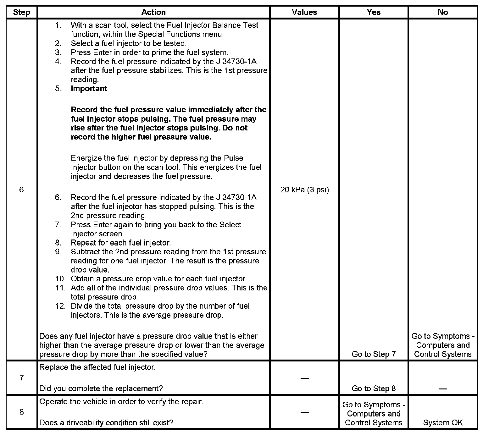 Fuel Injector Balance Test Example (Actual Results May Vary):