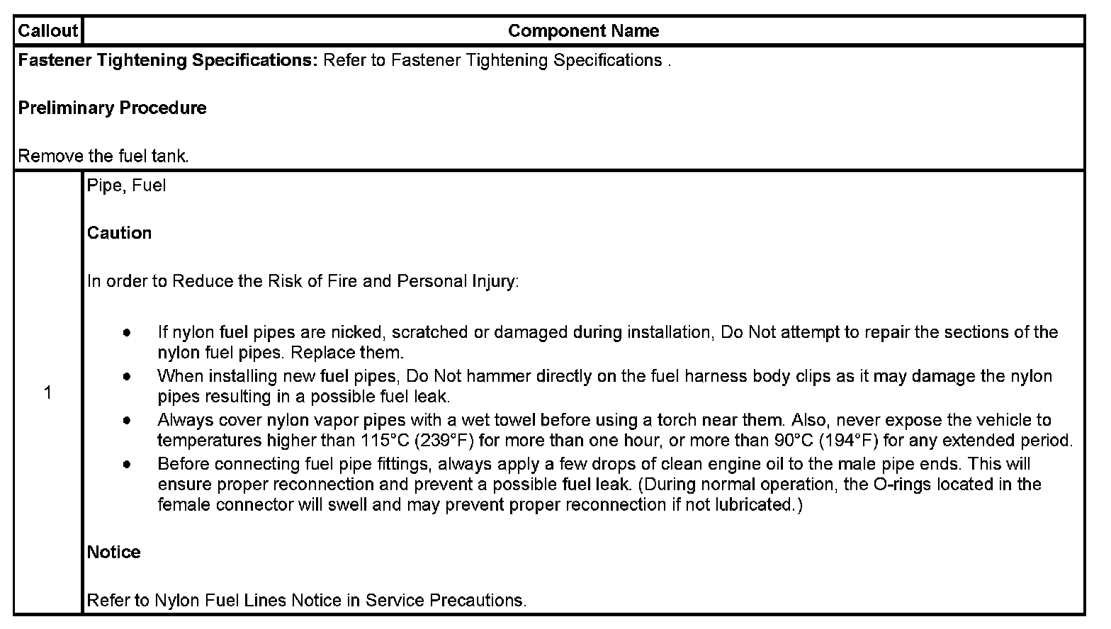 Fuel Hose/Pipes Replacement - Chassis