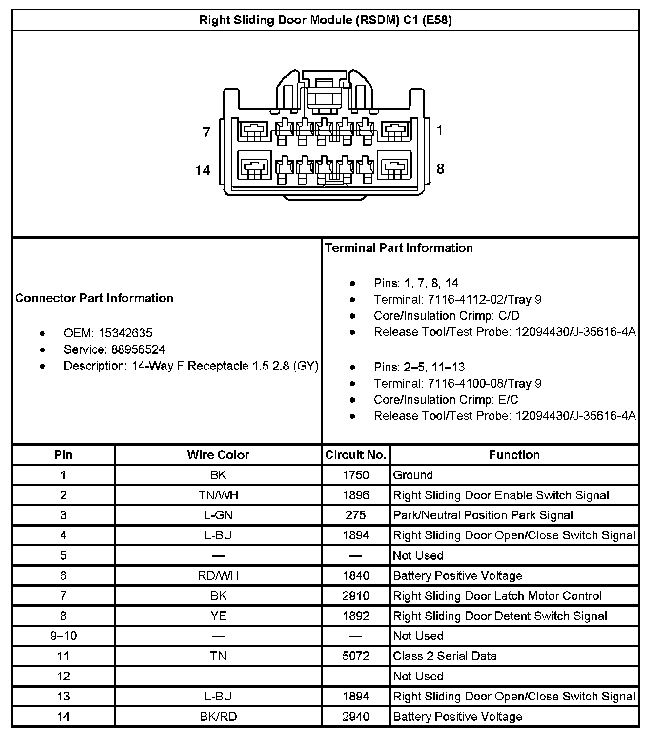 Right Sliding Door Module (RSDM) C1 (With RPO Code E58):