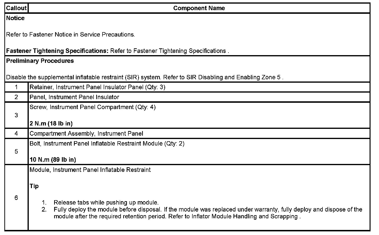 INFLATABLE RESTRAINT INSTRUMENT PANEL MODULE REPLACEMENT