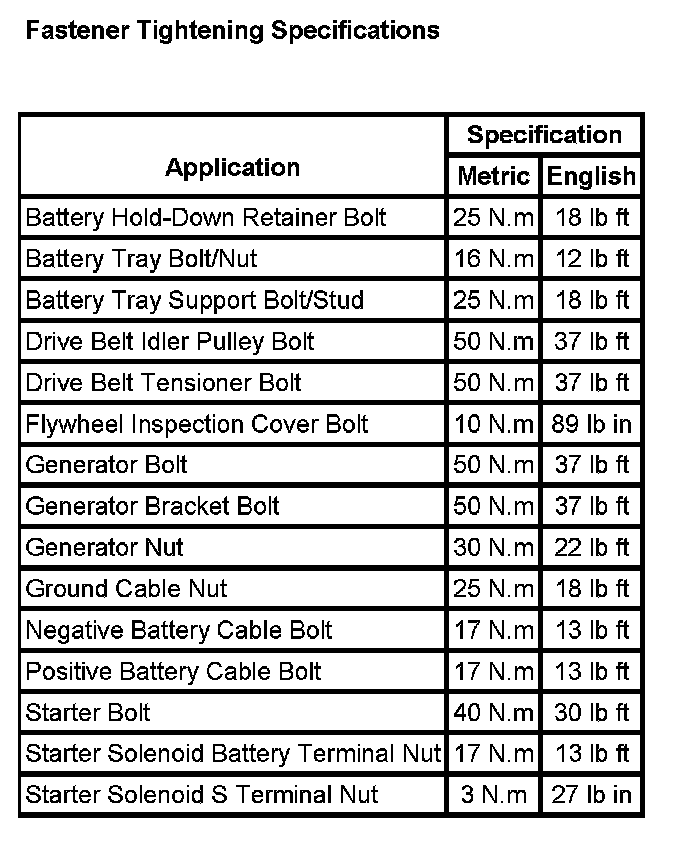 Fastener Tightening Specifications: